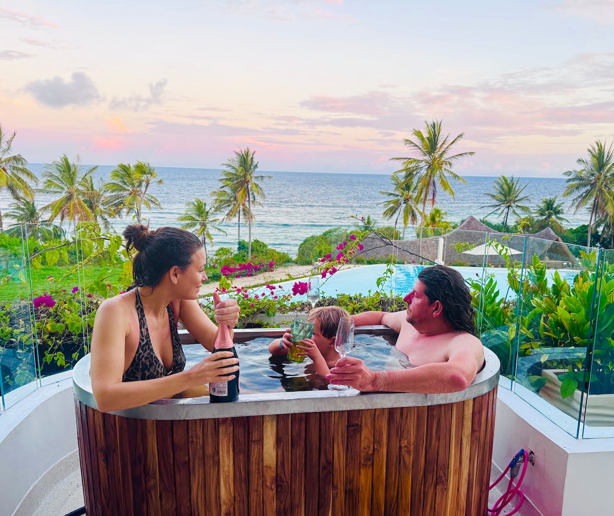 Ocean Kifaru-a unique 200m² villa-apartment combining hotel luxury with the privacy of a full home. It sleeps 7 in two en-suite ocean-view master bedrooms and a bunk room for three. Enjoy in-house butler service, a fully equipped kitchen, washing machine, dishwasher, espresso machine and honesty bar. Relax in the Swahili-style hot & cold ocean-view tub with sunset bubbles served by in-house 24/7 butler service host by Faith. Full board, excursions and transfers from SGR, MOI or Diani available.