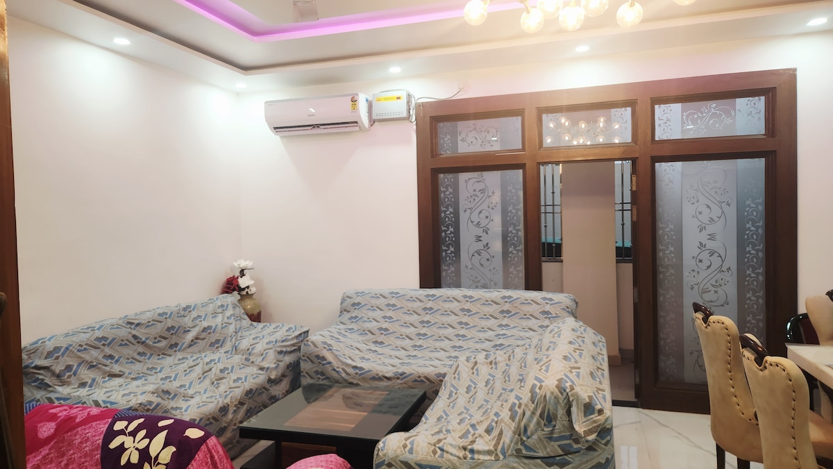Gestur getur aðeins bókað eitt herbergi á helmingnum. Samtal við mig um eitt herbergi. Þetta er staðsett á friðsælum og miðlægum stað og einnig í mjög öryggishliðinni nýlendunni. Húsvörður er til taks allan sólarhringinn. 10 tíma ræstingafólk er til taks. Þú getur dvalið hér í langan tíma og skoðað varanasi heilaga borg. Mættur mun hjálpa þér að kaupa matvöru og fyrir staðbundinn markað. Staðbundin leiðsögn er í boði til að hjálpa þér. Plz bókaðu þessa eign og fáðu frábæra upplifun...