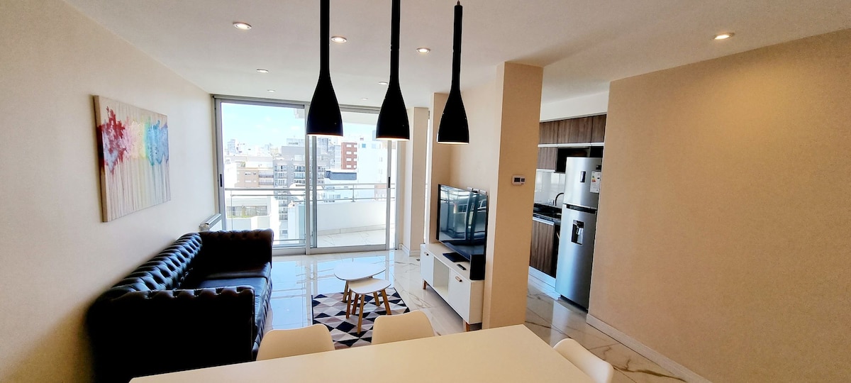 Þú munt njóta ógleymanlegs orlofs með útsýni yfir sjóinn og aðeins 50 metra frá ströndinni. Þetta sameinar þægindi, nútímalegan stíl og forréttinda staðsetningu. Þú verður með fullbúið eldhús, þráðlaust net á miklum hraða og snjallsjónvarp. Þar eru einnig rúmföt, handklæði, teppi og koddar. Fullkomið fyrir rómantískt frí, frí eða fjarvinnu með mögnuðu útsýni. Bókaðu núna og gerðu daga þína í Mar del Plata ógleymanlega. Við munum sjá til þess að þú njótir hverrar stundar!