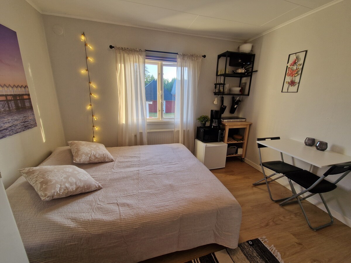Slappaðu af á þessu einstaka og notalega heimili. Verið hjartanlega velkomin í „129“. Gistiheimilið okkar er staðsett rétt við hafið, á afskekktum hluta garðsins okkar. Lunga, samfelld og friðsælt. Sundaðstaða er í boði. 2 km að Gränsö náttúruverndarsvæðinu með góðum gönguleiðum, 3 km til Västervik miðju. 1 km að Ekhagen golfvellinum. Hentar fyrir tvo eða max þrjá einstaklinga. Það er gott að bæta við bát við bryggjuna okkar ef þú vilt koma með bát. Hundar sem hegða sér vel en óska þess að þeir sofi í eigin rúmi.