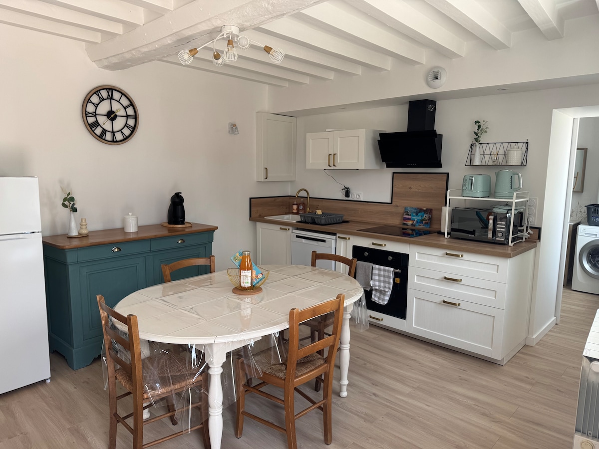 Björt og notaleg gisting, fullkomlega staðsett í hjarta Falaise. Það er staðsett við hliðina á öllum verslunum (slátrara fiskbúð matvöruverslun primeur bakarí veitingastaðir...), aðeins skrefum frá söfnum og kastala William Conqueror og vatnamiðstöðinni. Þessi íbúð er smekklega innréttuð og þér mun líða vel meðan á dvölinni stendur í Falaise. Það er með eldhús með húsgögnum, stofu, baðherbergi og svefnherbergi með geymslu fyrir eigur þínar.