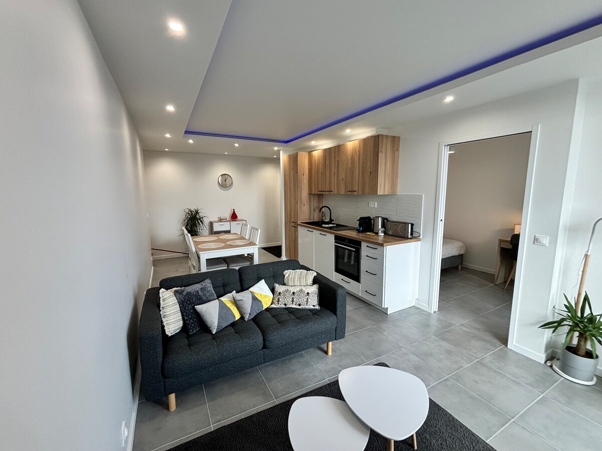 Þetta friðsæla heimili býður upp á afslappandi dvöl fyrir alla fjölskylduna. Þú verður með inngang, baðherbergi, eldhúskrók og svefnaðstöðu. (mest 4 manns 1 hjónarúm 160 cm og svefnsófi 2 staðir 140 cm) (barnarúm í boði sé þess óskað) Ég útvega „rúmföt“. Lokaður garður og verönd Leyfðu þessum kokteil að tæla þig hlýlegt, með þægindum og ró. The concert hall (forum) is 5 min away, ldl, butcher, RERA. No parties please