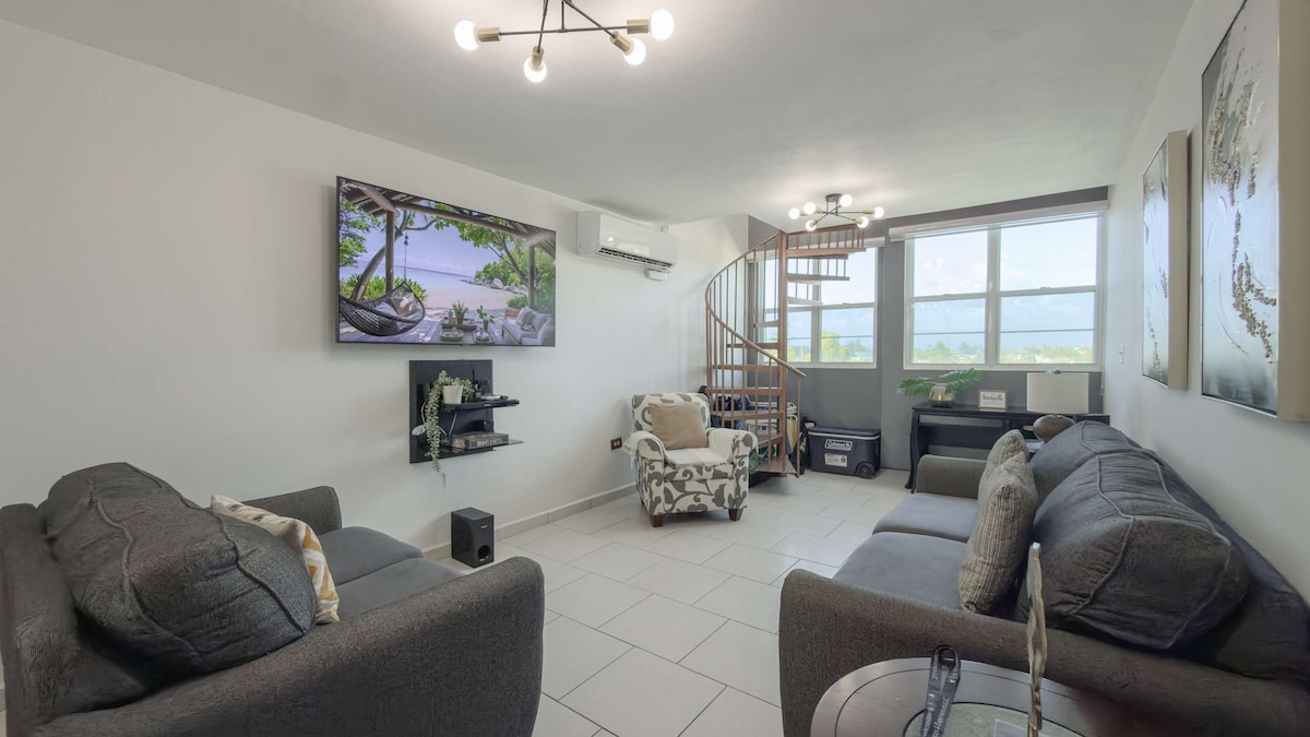Mar-A-Villa er mögnuð þriggja svefnherbergja strandperla sem er fullkomlega staðsett í stuttri akstursfjarlægð frá miklu úrvali af mögnuðum ströndum. Heimilið er með hreina og líflega tilfinningu sem tekur fullkomlega á móti þér og gestum þínum. Í aðeins 7 mínútna fjarlægð frá einni af þekktustu ströndum Púertó Ríkó, Playa Puerto Nuevo. Íbúðin býður upp á stóra sameiginlega sundlaug, barnaleikvöll, öryggisgæslu og hálfan körfuboltavöll. Fullkomlega einangruð frá borginni hávaði en nálægt öllu sem hægt er að hugsa sér.