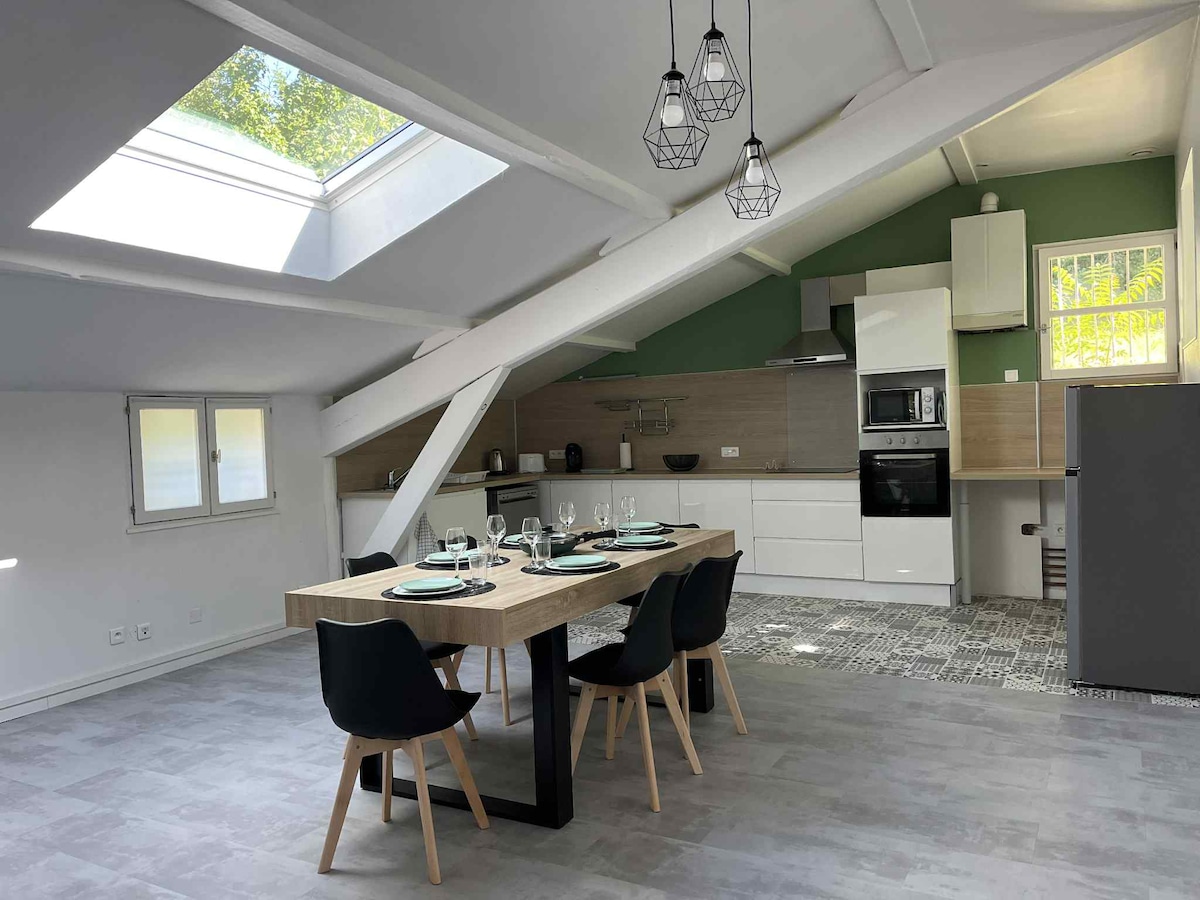 Við höfum gert upp íbúðina okkar í miðborginni til að skapa hlýlegt og þægilegt rými til að búa í. Allt er hugsað til þæginda: notaleg stofa, vel búið eldhús, svefnherbergi með þægilegum rúmfötum og nútímalegt baðherbergi. Þú finnur allt sem þú þarft fyrir áhyggjulausa dvöl: þráðlaust net, þvottavél, hárþurrku… Hvort sem þú ert að ferðast eða ferðast er okkur ánægja að taka á móti þér!