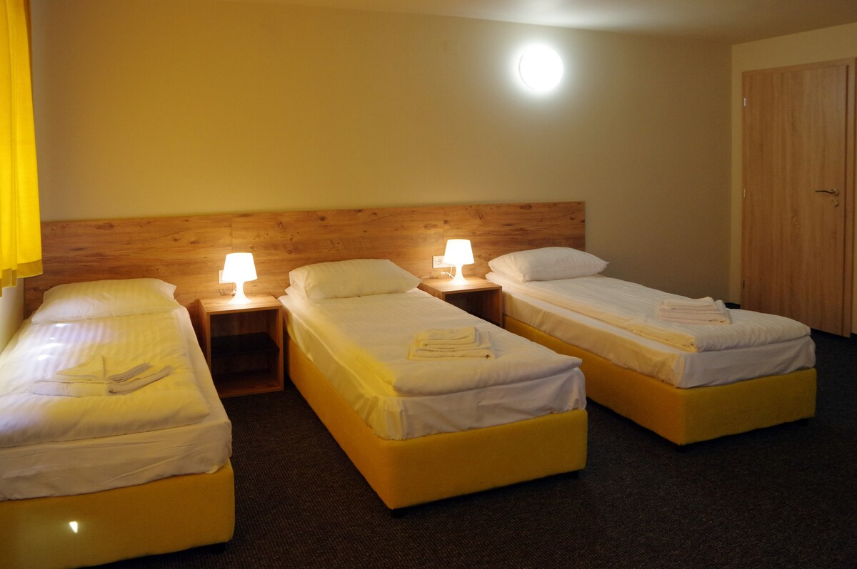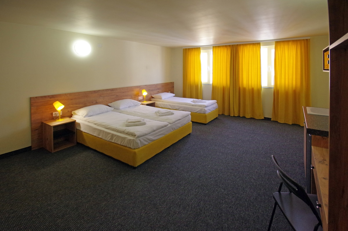 One bedroom apartament up to 4 persons - bedroom - living room with kitchenette and bed sofa - bathroom with shower cabin - balcony The kitchenette is fully equipped with cabinets, built-in oven, ceramic hot plates, aspirator, microwave oven, refrigerator, kettle for hot water, toaster, dining table with chairs. Each rooms is equipped with TV. The premises are air conditioned, and for full comfort the apartments are equipped with hairdryer, iron and ironing board.