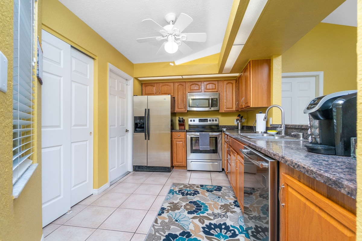 Staðsett í eftirsóknarverðu samfélagi í Feneyjum í rólegu hverfi þar sem þú getur ekki séð hvort það sé helgi eða á virkum degi. Eldhúsið er fullbúið, rúmin eru ótrúlega þægileg, sófinn og ástaraldin eru frábær til að slaka á. Allt sem þú þarft fyrir ströndina er innifalið í leigunni. Einkagirðingurinn í bakgarðinum gerir þér kleift að fylgjast með gæludýrinu þínu á meðan þú nýtur kaffibolla. Njóttu gesta á Netflix-reikningi og háhraðaneti frá XFINITY sem er innifalið í leigunni.