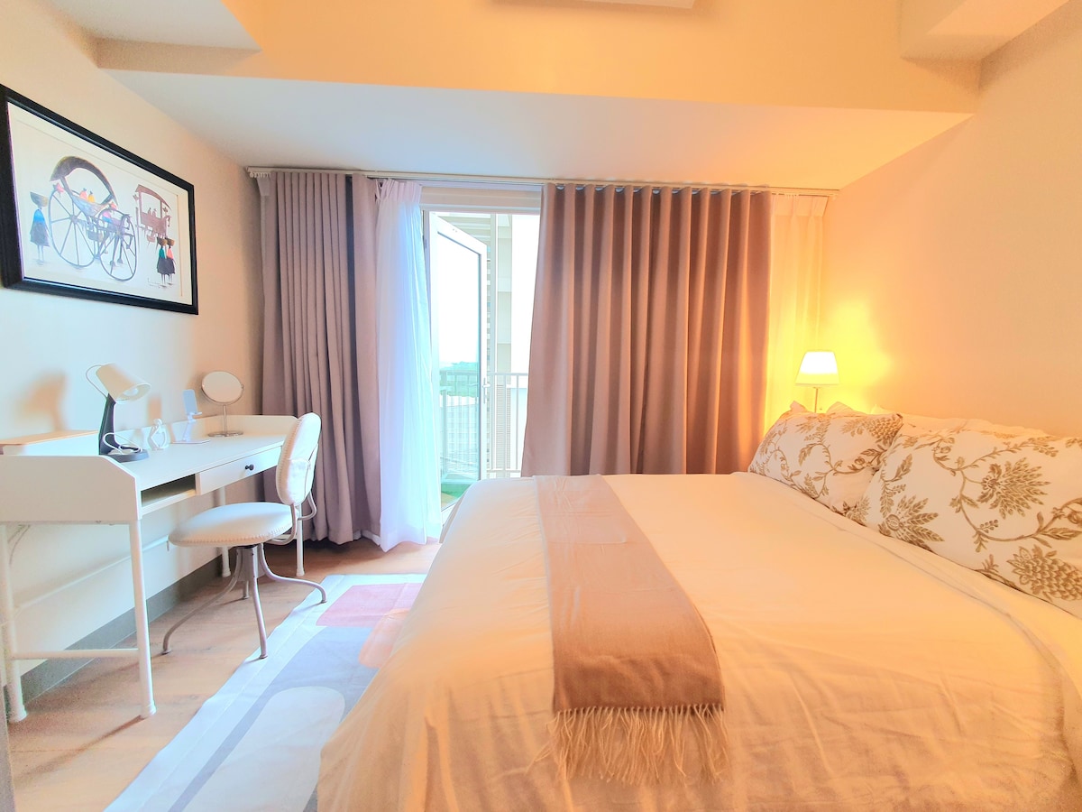 Bókaðu þessa lúxusgistingu í miðborg BGC. Allt er í aðeins nokkurra skrefa fjarlægð. Prime offices and high end malls around Uptown Parksuites. Upplifðu heimsborgaralegt frí í Uptown Mall. Kynnstu einstökum hugmyndum um mat og verslanir. Skemmtu þér á bestu börunum við dyrnar hjá þér. Slappaðu af í nútímalegu svefnherbergiseiningunni okkar frá miðri síðustu öld. Meðal þæginda eru 55 tommu SNJALLSJÓNVARP, 400 MB/S internet og rannsóknarsvæði. Njóttu þægilegrar og stílhreinnar upplifunar á þessum miðlæga stað.