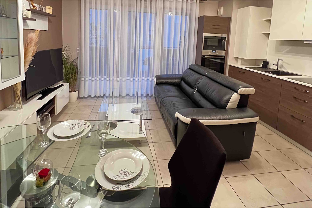 > 15 mín frá miðborg Lyon, tilvalin fyrir einkaferðir eða afþreyingu. > 35m² , íbúð á einni hæð, með 11m² verönd > Stutt í miðbæ St Genis Laval (staðbundnar verslanir). 5 mínútur frá St Genis 2 verslunarmiðstöðinni og í næsta nágrenni við Beauregard Park kastalann. > Beinn aðgangur A450 > Metro B ( Lyon / Oullin ) > TCL Bus Stops: Lína C10 (Bellecour, á 10 mín fresti) Lína 17 (Hôpital LYON SUD) > Afmælisveisla og óheimilar veislur.