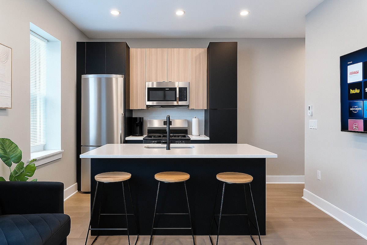 Verið velkomin í Pacific Getaway tilvalinn afdrep í Atlantic City, NJ þar sem strandlífið mætir þægindum og spennu! Þessi notalega 2 svefnherbergja, 2 baðherbergja íbúð er í boði fyrir þig og gesti, staðsett í aðeins nokkurra húsaraða fjarlægð frá sólarströndinni og í 5 mín göngufjarlægð frá hinum fræga Showboat Waterpark. Þessi íbúð er tilvalin til að uppfylla helgarferðina sem við þráum öll á meðan við sökktum okkur í þægilegt og spennandi umhverfi. Komdu og vertu með okkur hér á Pacific Getaway og leyfðu skemmtuninni að hefjast!