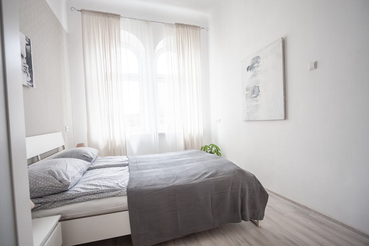 Þessi fjölskylduvæna íbúð með borgarútsýni hefur verið endurnýjuð að fullu og glæsilega innréttuð fyrir dvöl þína í Ventspils. Hér er allt sem þú þarft fyrir þægilegt frí: fullbúið eldhús, baðherbergi með baðkari, notalegt svefnherbergi og stofa í stúdíóstíl til að njóta samverunnar. Fullkomin staðsetning, í nokkurra mínútna fjarlægð frá Blue Flag-ströndinni og barnabænum. Njóttu fallega borgarútsýnisins og afslappandi frísins!