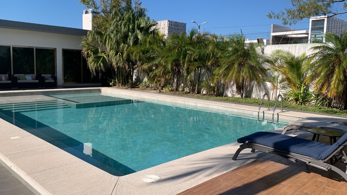 Casa Palmar er ný og nýuppgerð eign sem samanstendur af 6 svítum og 3 einföldum herbergjum. Staðsett 2 blokkir frá ströndinni á besta svæði Port of Veracruz. Þar er allt sem þú þarft til að eiga mjög þægilega og ógleymanlega dvöl, hvort sem er fyrir viðskiptaferð eða ferðaþjónustu