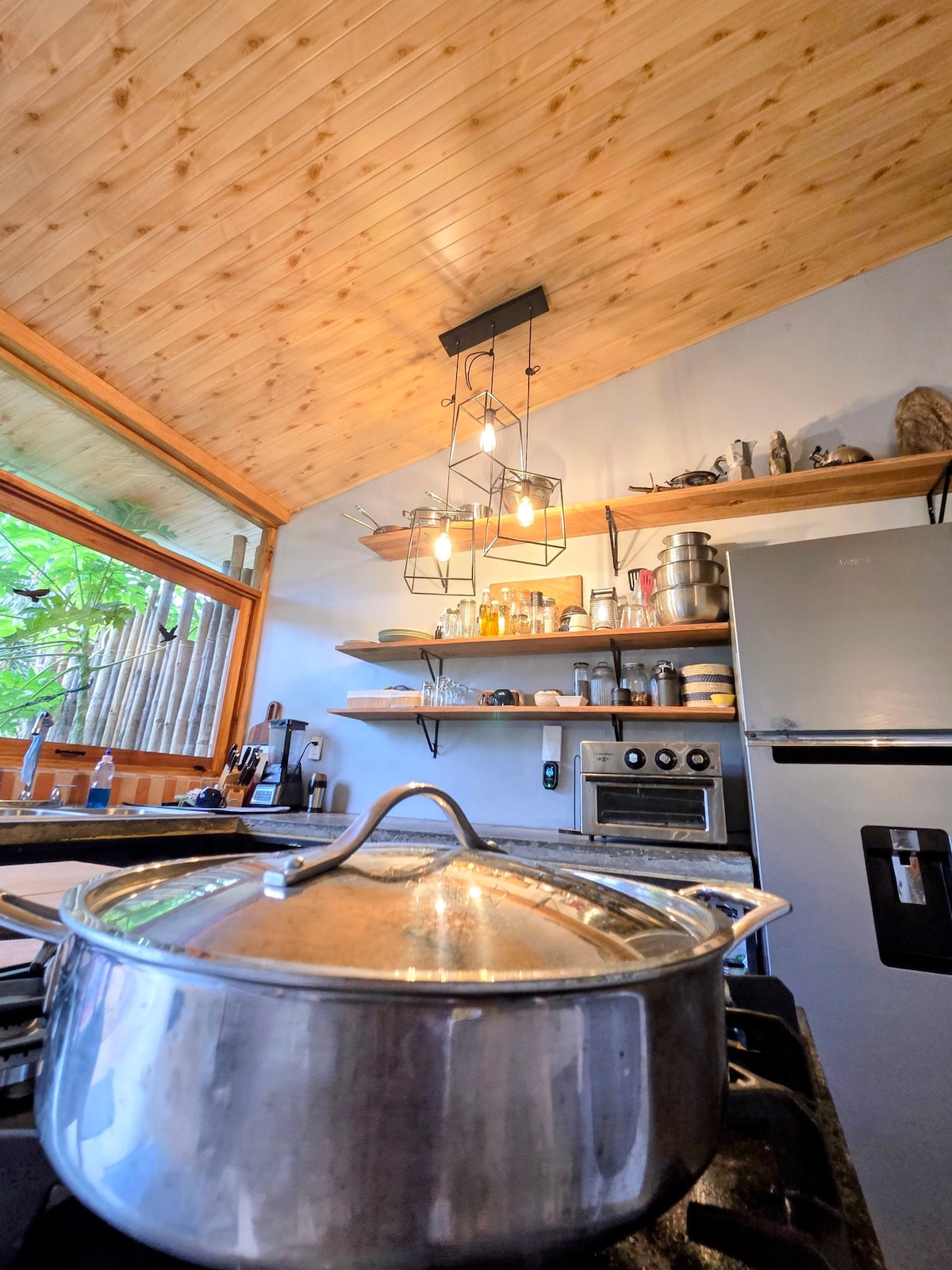 The Manifest Loft is a unique and beautiful home in the peaceful coastal village of Santa Catalina in Panama! It offers the perfect blend of modern comfort and tropical charm, making it the ideal spot for your next getaway. This open-concept space features high ceilings, large windows with beautiful views of the tropical green, and a minimalist design that emphasizes natural light and airy comfort.