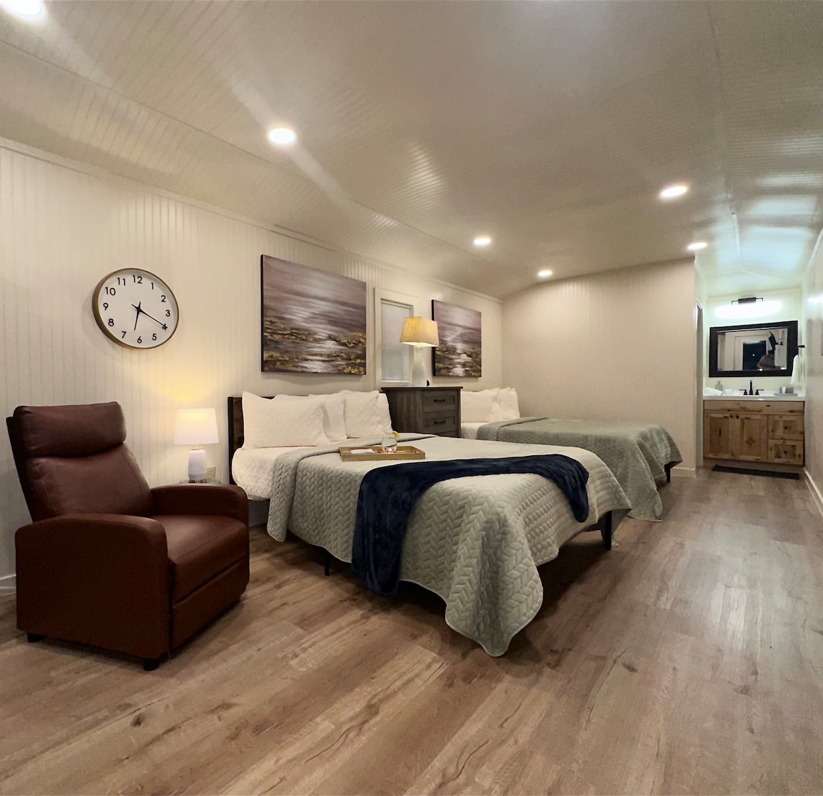 Enjoy peaceful sounds of nature and all of the comforts of home when you stay in this unique space! This 1 bedroom, 1 bath home with a loft is nestled at the top of a hill in a small RV park. It is conveniently located approximately ten minutes from Leesville and is near Fort Polk Gate 7! Nightly, weekly, monthly rates available!! Pets are welcome, but please disclose when booking. Feel free to message us with any questions!