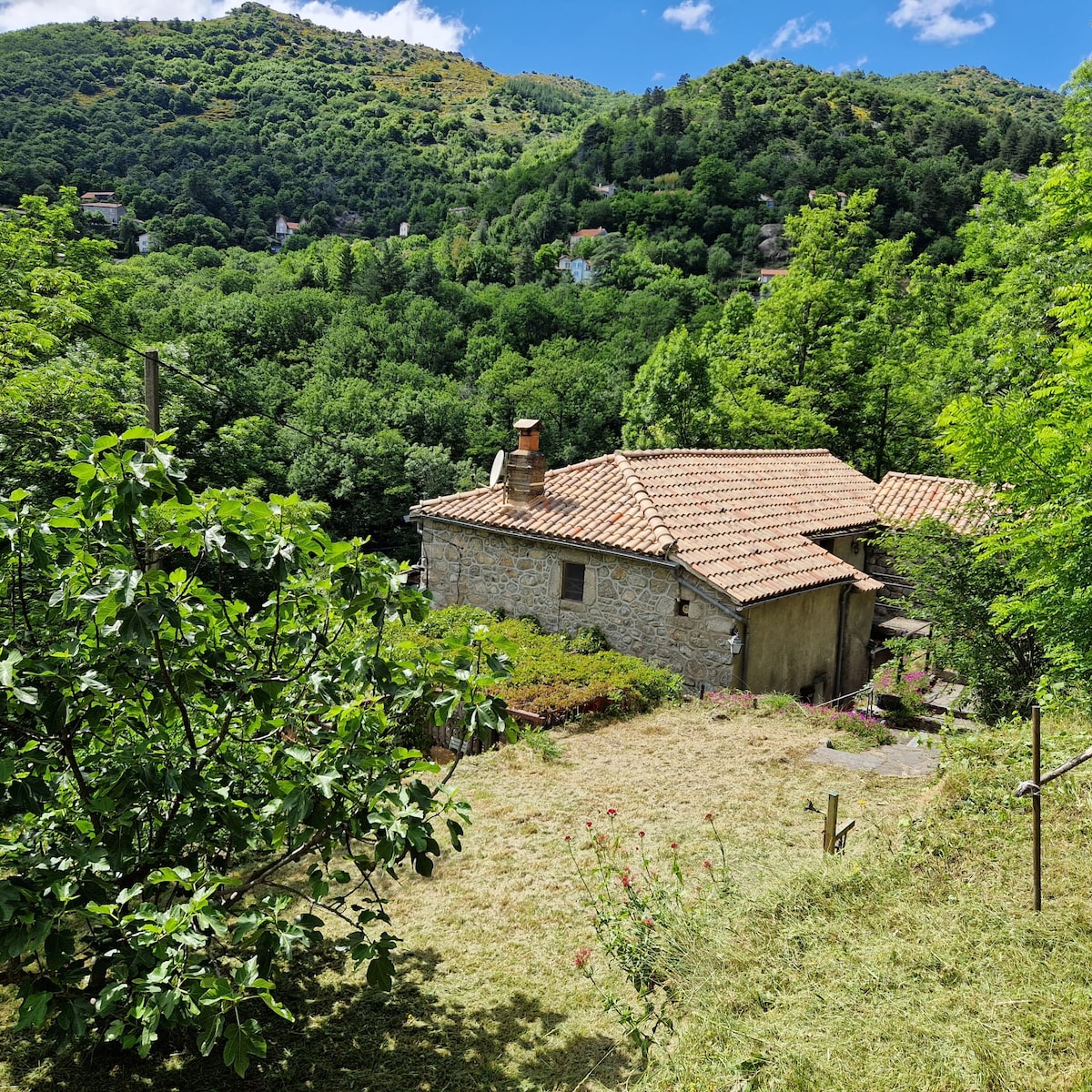 Villt náttúra, óspilltar ár, magnað útsýni, víðáttumikil opin svæði, djúp þögn og friður... The eco-gîte "La Clède" (a former chestnut drying house) is located right to our home, where plants dance with stone and the rocks whisper old stories... Þú getur slakað á í þessu þægilega og fallega hannaða gîte sem er stútfullt af þögn og snýr að ósnortinni náttúru. Endurkoma í það sem þú þarft í raun og veru – án þess að gefast upp á þægindum.