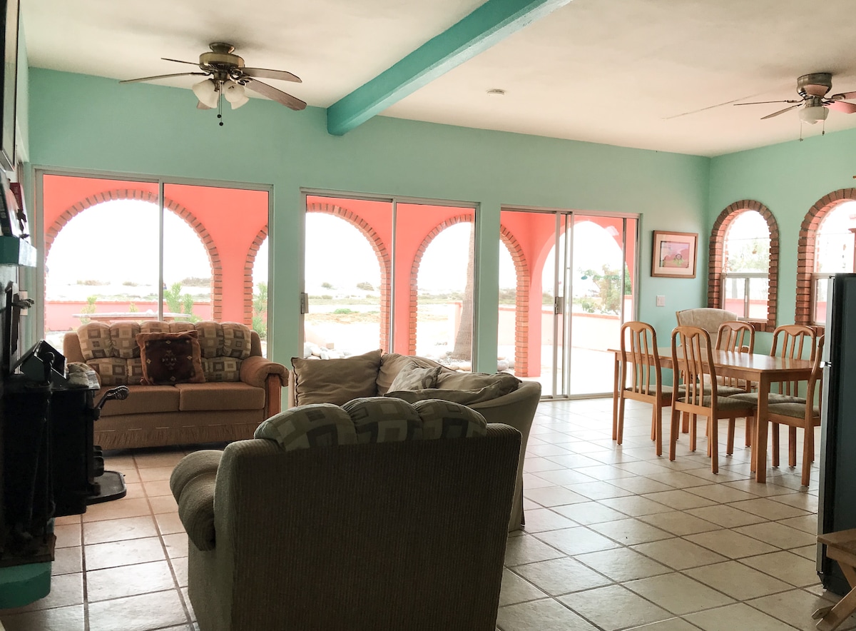 Casa de Hope er nýuppgert tveggja hæða heimili með mögnuðu útsýni í allar áttir! Staðsett í minna en 3 km fjarlægð frá ströndinni og Vte. Guerrero, það er nálægt öllu sem þú þarft. Rúmgóðar svalirnar eru fullkomnar fyrir sólsetur eða samkomur með vinum. Með 8 svefnherbergjum, plássi fyrir 19 gesti, stórum garði og nægum bílastæðum fyrir mörg ökutæki eða hjólhýsi er það tilvalið fyrir fjölskylduferðir eða mannfagnaði. Athugaðu - Viðbótargjöld eiga við vegna viðburða sem búast má við óskráðum gestum.