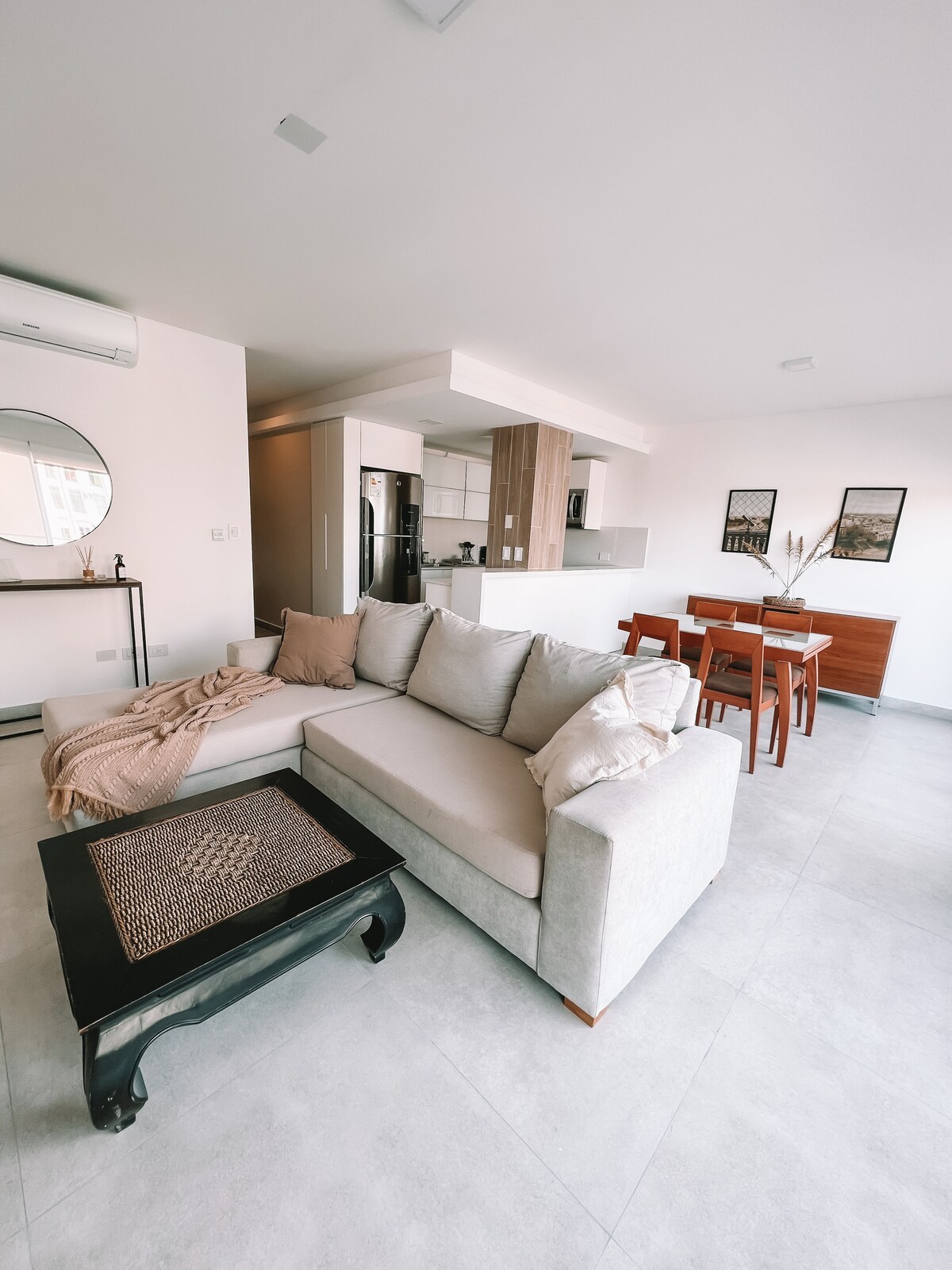 Domus Olivos harbour premium apt, riverside views, bird sounds, lots of natural light and green area. 54sqm distributed in an open floor, integrated kitchen, living room, Queen bed, and terraced dining room balcony Super WIFI 600 Mb, Full Amenities, decoration and furniture of category from Indonesia, Bali & India. 24 hour security - area guarded by the Navy and since is located a few meters from the presidencial house is one of the safest area in the city.