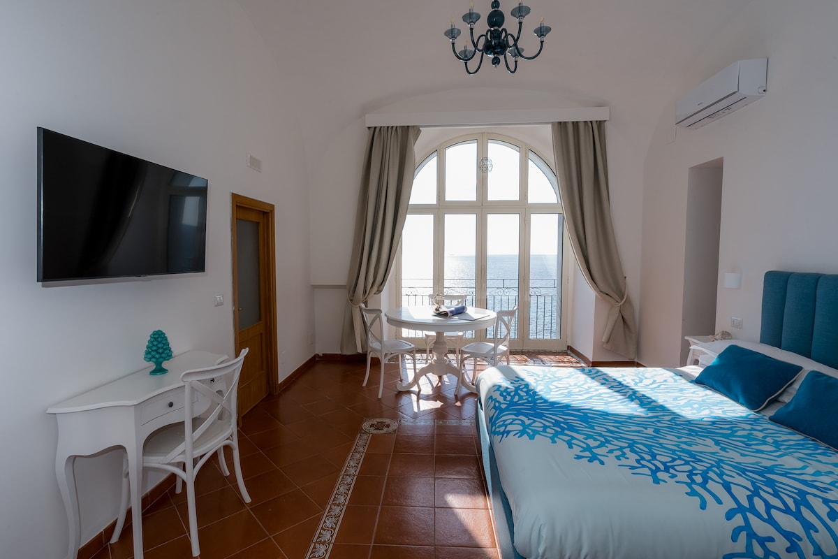 Íbúðin er staðsett í Meta di Sorrento, nokkrum skrefum frá ströndinni, á fyrstu hæð í sögulegri byggingu og er fínuppgerð, hljóðlát og frátekin með mjög yfirgripsmiklu útsýni yfir sjóinn úr öllum herbergjum. Það samanstendur af hjónaherbergi (auk eins rúms ef þörf krefur), eldhúsi, baðherbergi með skolskál og sturtu og verönd með útsýni yfir sjóinn. Húsið er með ísskáp, sjónvarpi, þvottavél og örbylgjuofni. Þar er pláss fyrir allt að 3 manns.