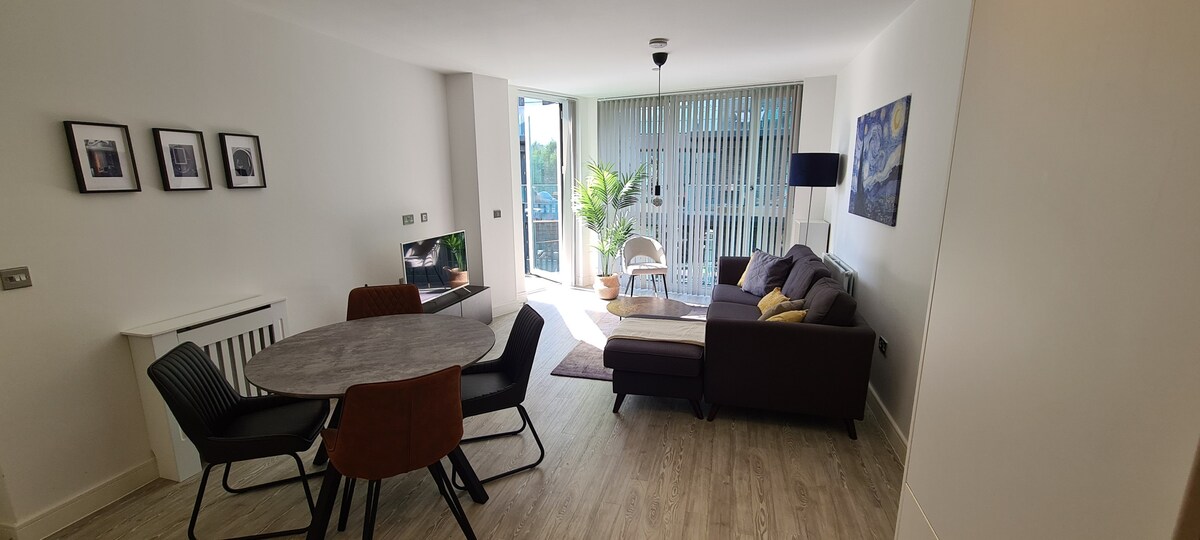 This lovely double-bedroom apartment is centrally located in the popular Victoria Park area, east London. Called 'The Village' by locals the area is full of boutique shops, cafes, & restaurants all close by the green park. The apartment has a double-bedroom with Kingsize bed, bathroom with shower & bath, spacious living-room & work space, as well as separate kitchen and diner for all your cooking needs. Stylishly furnished and with all appliances, you will feel very comfortable and at home.