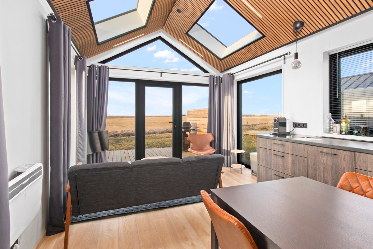Heillandi smáhýsi á friðsælum, afskekktum stað milli Hellu og Hvolsvallar, aðeins 8 mín frá þjóðvegi nr. 1. Fullkomið til að slaka á og slaka á. Stór framrúðan gerir þér kleift að njóta náttúrunnar beint frá rúminu: töfrandi sólarupprásir, norðurljós og útsýni yfir ána, fjöllin og eldfjallið Hekla. Í húsinu er nútímalegt og vel búið eldhús og þægilegt baðherbergi. !!Frá og með miðjum júní mun glænýr nuddpottur með nuddvirkni og lýsingu bjóða upp á enn meiri þægindi!!