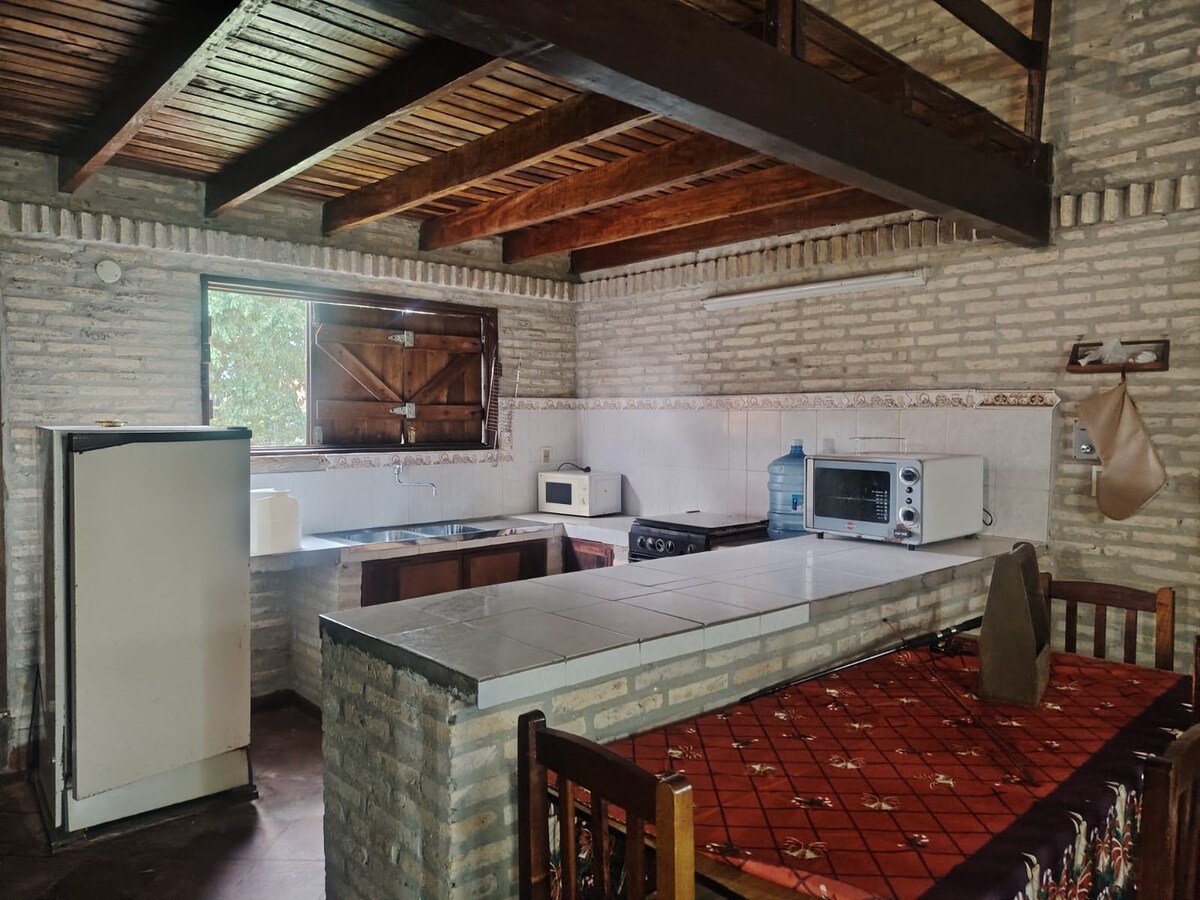 Divertite con toda la familia en este alojamiento! Ubicada en un rincón privilegiado y tranquilo de Villa Florida, equilibrio perfecto entre modernidad y naturaleza, a minutos del imponente Río Tebicuary. Ideal para la pesca y los atardeceres frente al agua. Quincho de 10 mts, conectado a una sala acogedora con aires acondicionados. Espacios amoblados en sala, dormitorio y baño. Parrilla integral en quincho cerrado, dormitorio con cama matrimonial + doble cama integrada. estacionamiento amplio