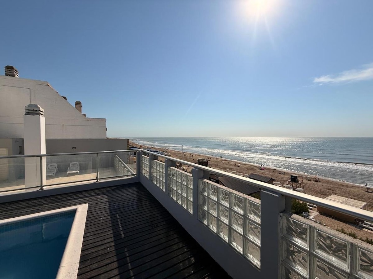 Villa Gesell . Monoamb. með verönd með sjávarútsýni.