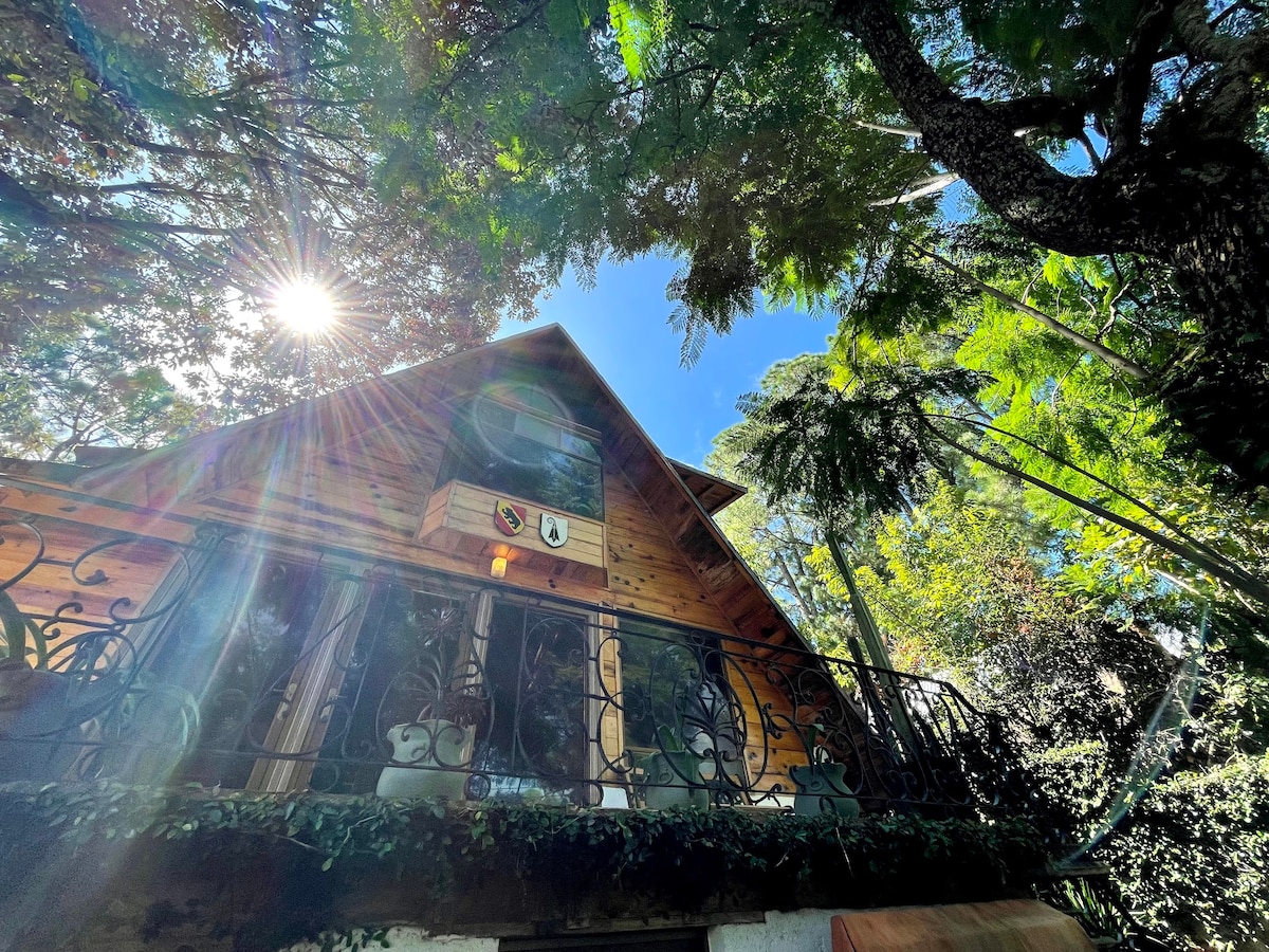 Cabaña suiza recientemente remodelada. Cuenta con amplios espacios, hermoso jardín, terraza techada, comedor interior y exterior, chimenea y asador. Este anuncio NO incluye toda la propiedad; sólo la cabaña principal. NO incluye una recámara (suite) independiente con entrada completamente separada de la cabaña que podría rentarse por otros huéspedes. Las áreas compartidas son: terraza, jardín y estacionamiento; con prioridad para quien haya reservado la cabaña. Caben cómodos 9 (máximo 11).