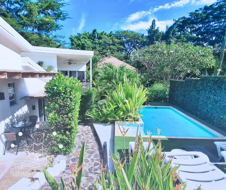 Apartamento equipado con todo lo que necesitas para corto o largo plazo de estadía. Internet rápido, ubicado en una rotonda residencial tranquila donde casi no circulan autos. A 300 metros de la playa, restaurantes, banco, supermercado, 100 metros del gym super céntrico. Puedes salir en la noche y volver caminando. Es normal ver en el patio, iguanas, monos aulladores, zorritos, Aves, ardillas etc. Los huespedes tiene descuentos en el surf shop Club 33 y además te ayudare a recomendarte otras act