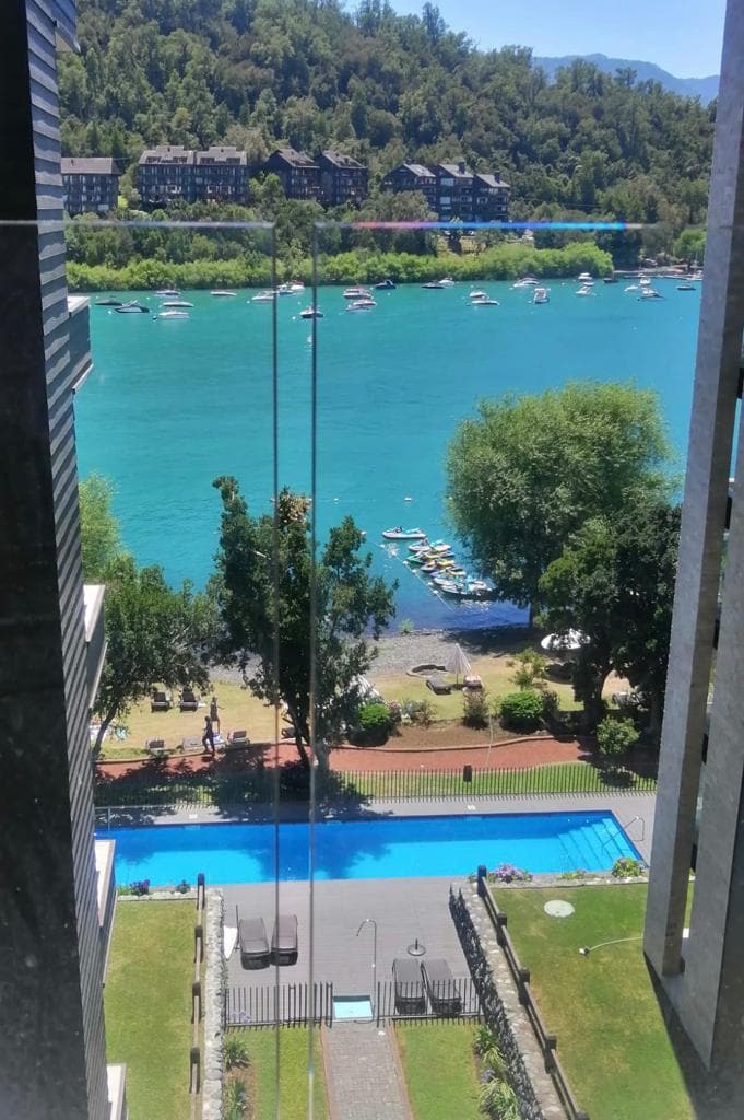 Departamento con vista directa al lago y al volcán, ideal para disfrutar en familia un entorno natural y privilegiado. Frente al lago y con acceso directo. El condominio cuenta con club Hause (sala de cine, sala de juegos para niños, jacuzzi, sauna, GYM, mesa de Pool, entre muchas otras cosas) canchas de tenis, piscina, restaurante y mucho más! Solo a 3 min en auto al centro de la ciudad.