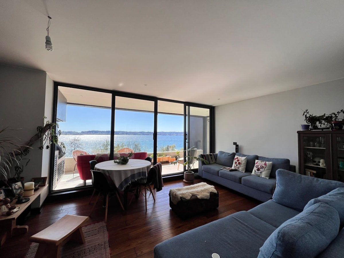 Spacious and fine apartment (2nd floor), in "Parque Pinares" condominium (www.parquepinares.cl), located on the shore of Lake Villarrica, with private access to the Lake and surrounded by native trees and very close to Pucon (less than 1 Km). With large living room and terrace overlooking the lake, boats and mountains. Suite bedroom with lake view, walk-in closet, security box and large bathroom. It can go to a wide variety of restaurants, casino and nightclubs, Walking or in Uber.