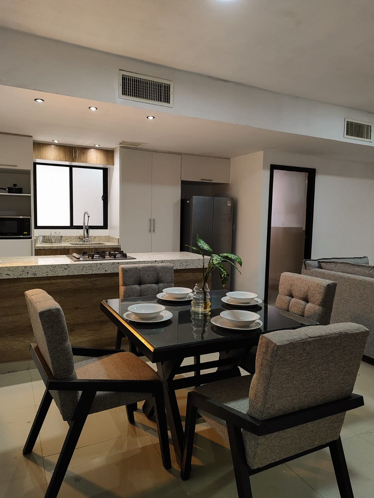 📝 Disfruta de un departamento privado, tranquilo y seguro en zona residencial al Norte de Torreón. A solo 5 min del aeropuerto, TSM, Galerías y hospitales. Ideal para familias o ejecutivos. Cuenta con WiFi rápido, TV HD, Netflix, estacionamiento cerrado y acceso con cerraduras inteligentes. Acceso a terrazas y cuarto de lavado compartido. Si viajas con bebé, solicita corral y protectores.