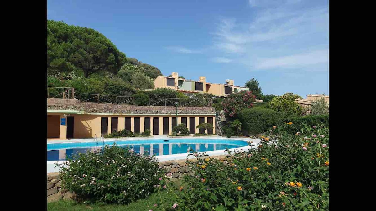 Villasimius, tveggja hæða raðhús með strönd í 300 metra fjarlægð í göngufæri. Sjávarútsýni yfir Porto Giunco, sólrík staðsetning, lítill garður með grilli og verönd þar sem hægt er að borða utandyra og þvo þvott bakatil. Rólegt íbúðarhverfi með bílastæði, nálægt miðju Villasimius (um 1500 mt). Tilvalið fyrir pör eða fjölskyldur með börn, hentar fyrir nám/vinnu Allt innifalið: ræstingar, handklæði, rúmföt, vatn, rafmagns- og gasnotkun, þráðlaust net og gistináttaskattar