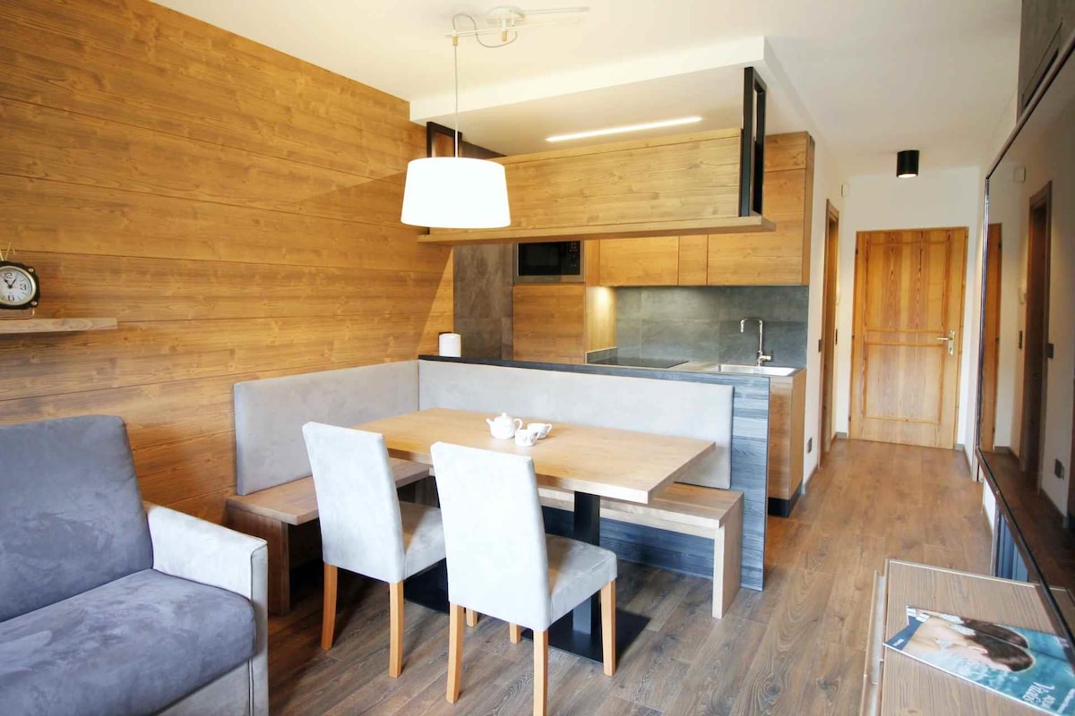 Háaloft í hlöðu frá 17. öld í 1500 metra hæð með útsýni yfir fjöllin og endurnýjað árið 2023 með fornum skógi og steinum á staðnum. Íbúðin samanstendur af borðstofu með fullbúnu eldhúsi ásamt stórri stofu með arni og stórum svefnsófa, þægilegu baðherbergi með sturtu og „afdrepi“ með 2 aukarúmum. Eignin er fullkomin fyrir par en þar er einnig pláss fyrir fjölskyldu með 2 börn en ekki 4 fullorðna. 025044-LOC-00301 - IT025044C2U74B4BTG