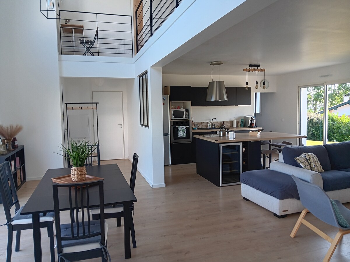 Arkitektavilla 4 500m ☆☆☆☆ frá þorpinu Villefranque og verslunum þar. Við hlið Bayonne, nokkrar mínútur frá ströndum Anglet, Biarritz, St Jean de Luz og Bidart. Nálægt fallegustu þorpum: Espelette, Saint-Pée-sur-Nivelle, Saint-jean-pied-de-port..... Spánn: Dantxaria, Col d ibardine, Fontarabie, San Sebastien. Afþreying: Brimbrettabrun, gönguferðir, róðrarbretti, tennis, fjallahjól, kanó, flúðasiglingar, ferðir, smökkun, ekki gleyma sveitaþingum...