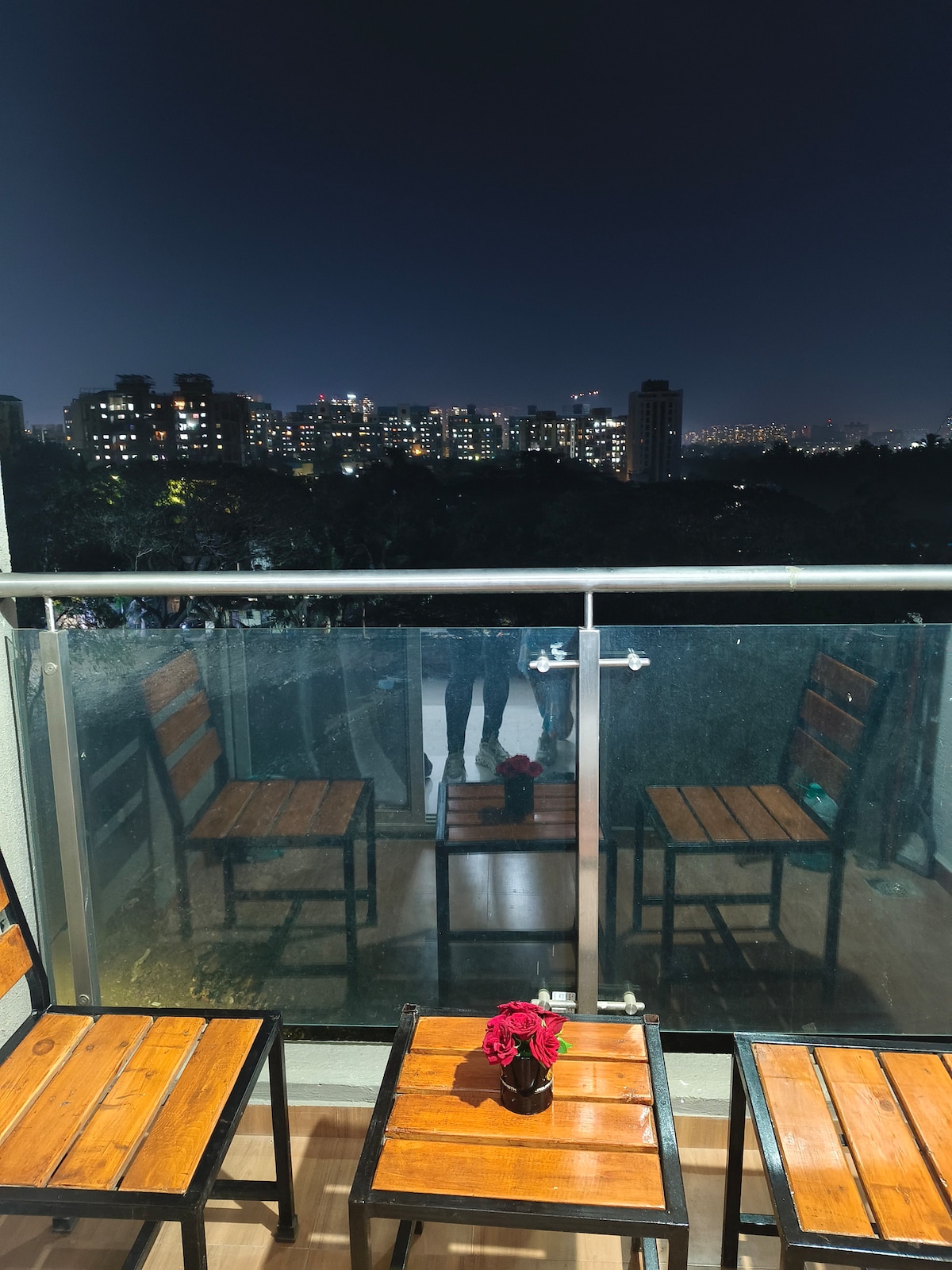 Gaman að fá þig í Fivara Retreats – A Home with a Story. Þessi notalega íbúð í Viman Nagar er fæddur í æskudraum þriggja vina og blandar saman hlýju, stíl og þægindum. Njóttu huggulegs svefnherbergis, nútímalegs eldhúss, einkasvala og snjallsjónvarps fyrir afslappaða kvöldstund. Gestir hafa einnig aðgang að úrvalsþægindum í sundlaug, garði, líkamsrækt og þaki. Fivara Retreats er heimili þitt að heiman í Pune fyrir ferðamenn, fagfólk eða helgarferðir.