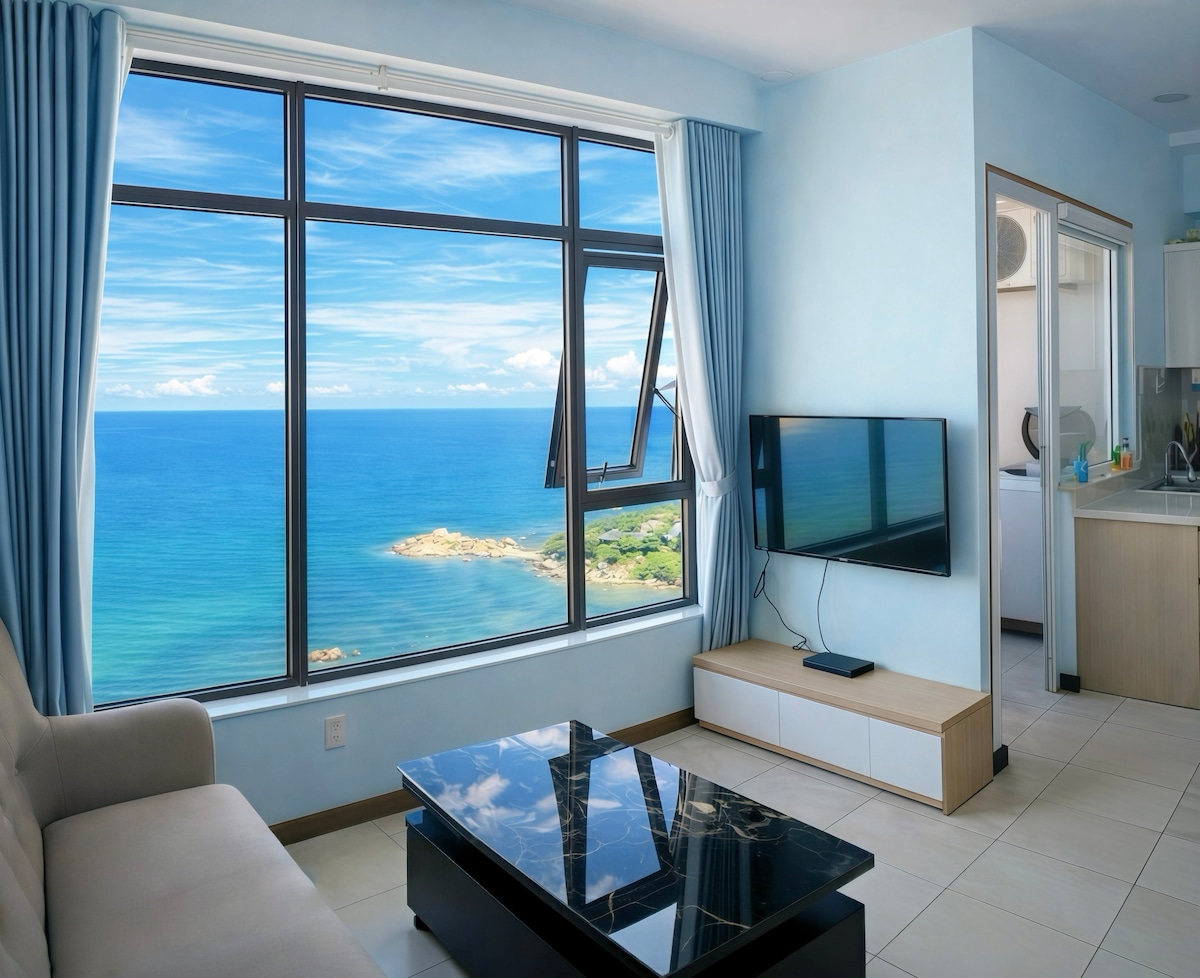 Stór þriggja svefnherbergja íbúð með allt að 150 fermetra flatarmáli. Íbúðin er nútímalega hönnuð ásamt vönduðum húsgögnum. Öll herbergin eru með sjávarútsýni. Íbúðin er í byggingu með verslunarmiðstöð, kvikmyndahúsi, KFC, Texas-kjúklingi, Starburck, ... Það er Lottle Mart við hliðina á byggingunni. Sérstakt: ókeypis akstur frá flugvelli eða skutl á við um bókanir í 3 nætur sem á við um fjögurra sæta eða 7 sæta bíl. Ef það er 16 sæta bílur verður 250.000 VND viðbótargjald