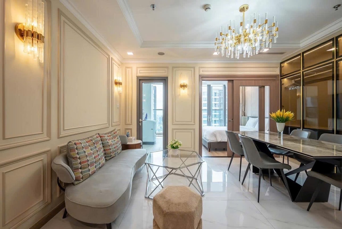 Hello! Thank you for your interest in staying at our luxury apartment in Vinhomes Central Park (VCP) 🇻🇳 Overview: • 2 BEDROOMS, fully furnished. • Located on the 41th floor of LANDMARK 2 • 1-minute walk to Landmark 81. • 1-minute walk to VINCOM shopping mall. • 5-minute walk to Vinhomes Park. • 15-minute taxi ride to BEN THANH Market. • 15-minute taxi ride to District 1 city center.