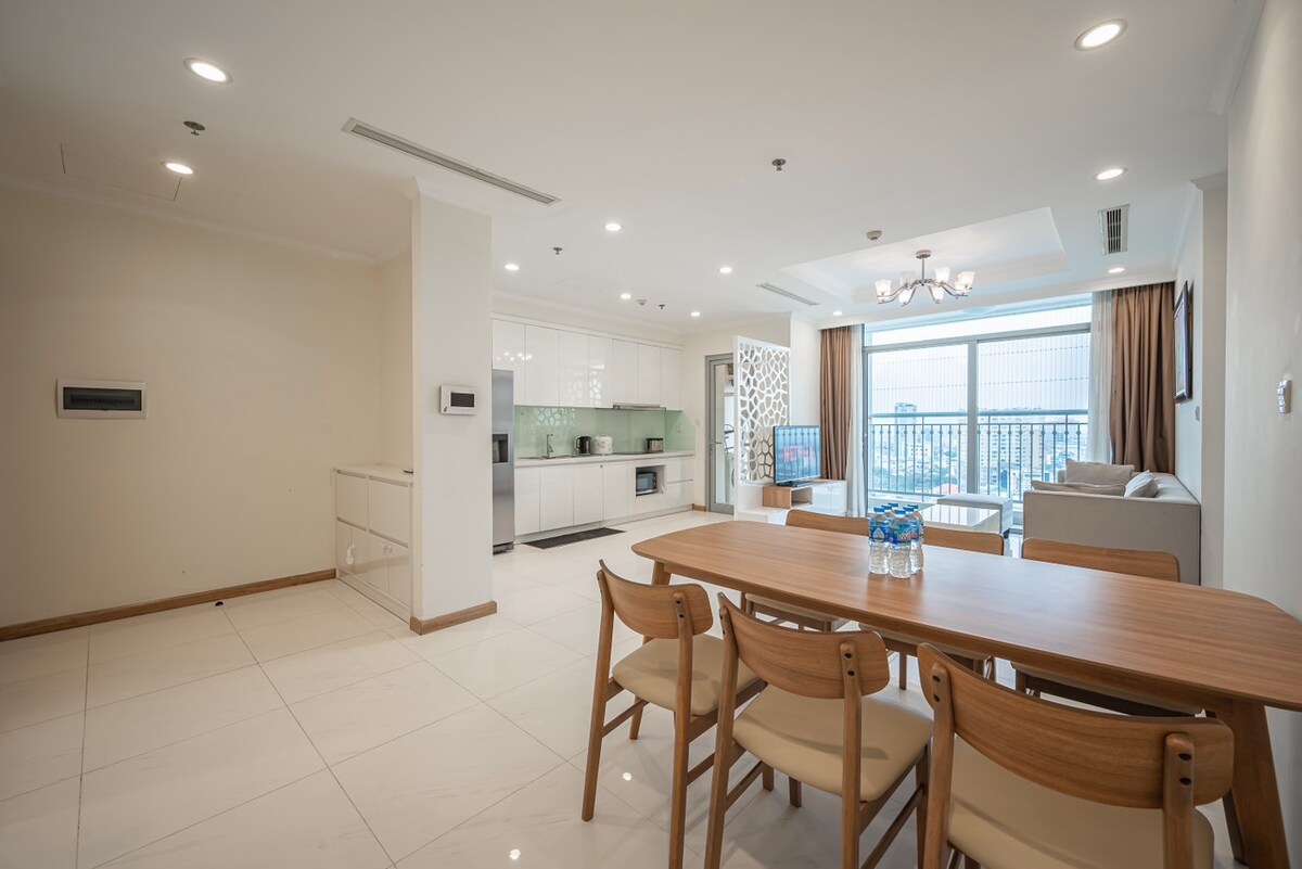 Landmark 1 Apartment – Top notch living right next to Landmark 81 Verið velkomin í háklassa vistarveruna við Landmark 1 sem er staðsett við hliðina á táknrænu byggingunni Landmark 81 ✨ Upplýsingar um íbúð: 2 svefnherbergi, 2 salerni, rúmgóðar svalir fyrir vind og dagsbirtu. 100% ný húsgögn, nútímaleg hönnun með litlum bar, listljósakrónum og áberandi litum sem skapa áherslu á persónuleika eignarinnar. Búin háklassa dýnupúðum með teppum í samræmi við 5 stjörnu hótelstaðla sem veitir algjöra afslöppun.