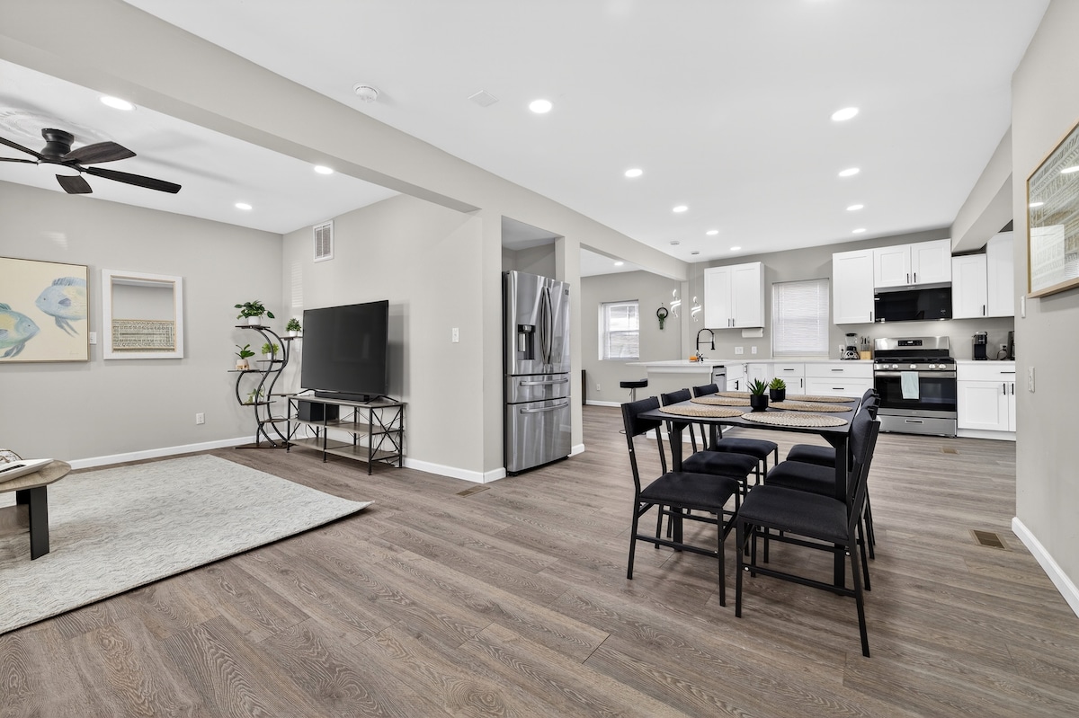 Þetta 3 saga bæjarheimili (svipað og Duplex House) er fullkomið frí til að njóta dagsins á ströndinni! Aðeins 5 mínútna göngufjarlægð frá Oceanfront Boardwalk, þú getur notið kvöldgöngu eða borðað kvöldmat á einum af hundruðum veitingastaða á svæðinu. Fyrsta hjónaherbergi og 2 önnur herbergi eru á annarri hæð. Annað hjónaherbergi er á þriðju hæð. Einnig bjóðum við upp á lyklakippu fyrir allar dyr inni, fyrir utan húsið. Strandstóll, grill o.s.frv. er einnig í boði fyrir þig meðan þú dvelur.
