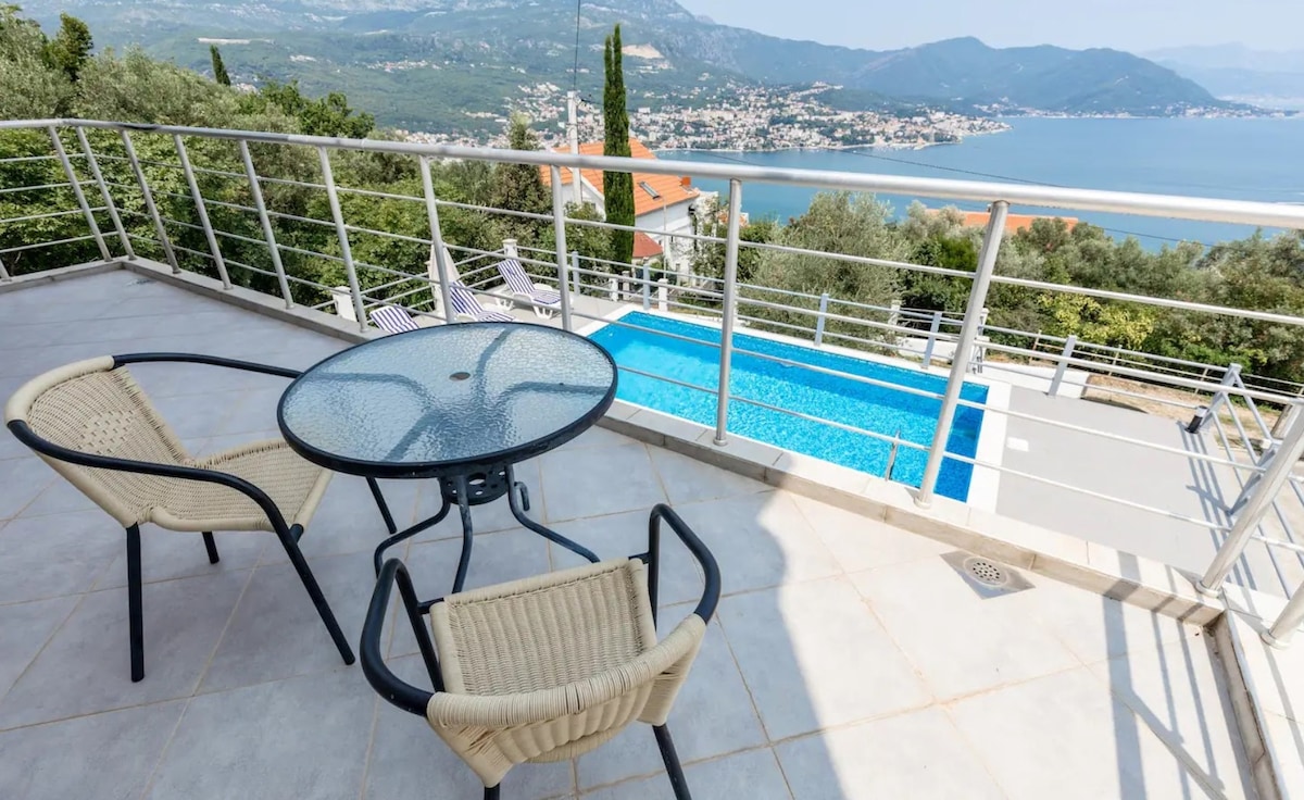Vaknaðu með mögnuðu útsýni yfir Adríahafið í þessari uppgerðu íbúð við sjávarsíðuna við frægu göngusvæðið í Herceg Novi. Njóttu stórra einkasvala með sjávarútsýni í forstofu. Fullkomnar fyrir morgunkaffi eða sólsetursdrykki og strönd í aðeins 20 metra fjarlægð. Eignin var endurnýjuð að fullu árið 2022 og er tilvalin fyrir pör eða litlar fjölskyldur sem vilja skoða gamla bæinn í nágrenninu og mörg kaffihús og veitingastaði sem eru í göngufæri. Hún býður upp á fullkomna blöndu af afslöppun og líflegri sumarorku.