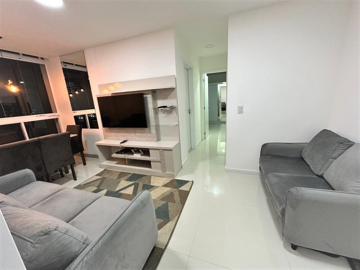 Slakaðu á í þessu rólega og stílhreina rými. Fimmtíu og fimm fermetrar af þægindum. Farðu yfir götuna til að komast inn á verslunarmiðstöðina Boulevard Shopping Vila Velha. Njótið óhindraðs útsýnis yfir Itaparica-sjóinn í gegnum glervegg stofunnar. stofa. Við hlökkum til að taka á móti ykkur!