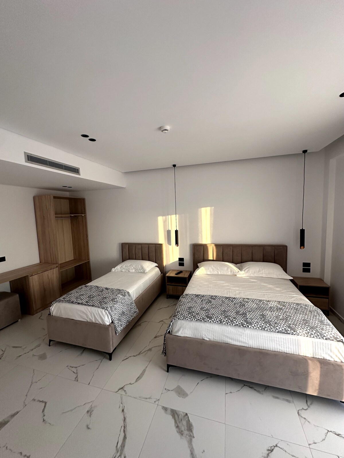 Glænýtt nútímalegt hönnunarhótel í hjarta Ksamil Vertu meðal þeirra fyrstu til að upplifa nýopnaða hönnunarhótelið okkar, steinsnar frá mögnuðum ströndum Ksamil. Hvert herbergi er haganlega hannað með nútímalegum og afslöppuðum stíl og í hverju herbergi eru mjúkir, hlutlausir tónar, þægilegar innréttingar og einkasvalir til að slappa af. Þar sem strandklúbbar, veitingastaðir og verslanir eru í göngufæri er þetta fullkomin bækistöð fyrir afslappað frí við ströndina. Komdu þér fyrir og njóttu þess besta sem Ksamil hefur upp á að bjóða í þægindum og stíl.