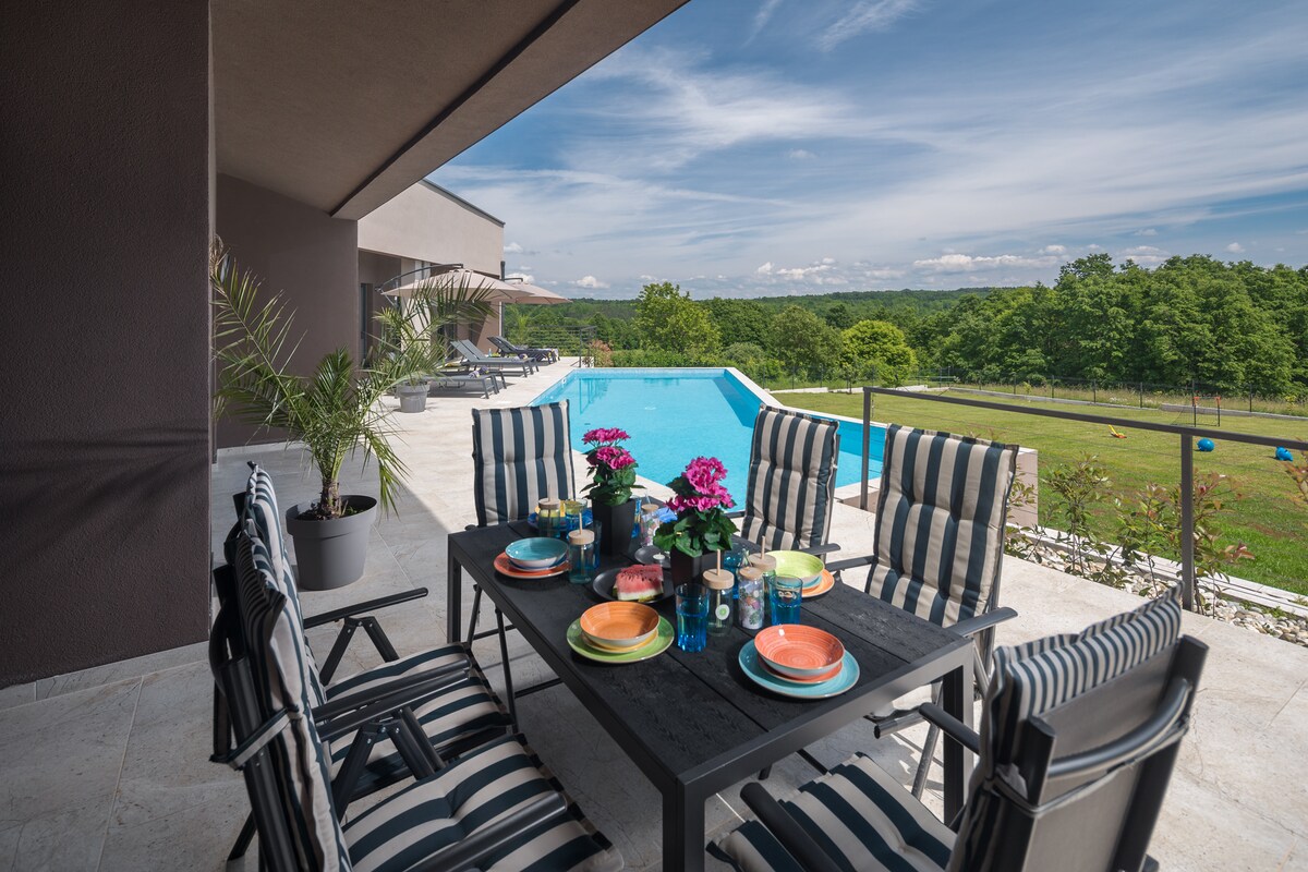 Nútímaleg villa við Miðjarðarhafið á friðsælli einkadvalarstað með útsýni yfir Kvarner-flóa, Opatija Riviera og Istria-skaga. Umkringd einkalofnarblómum, einkasnyrtipotti (8x6m) og heitum potti og eldstæði, allt með stórkostlegu sjávarútsýni!