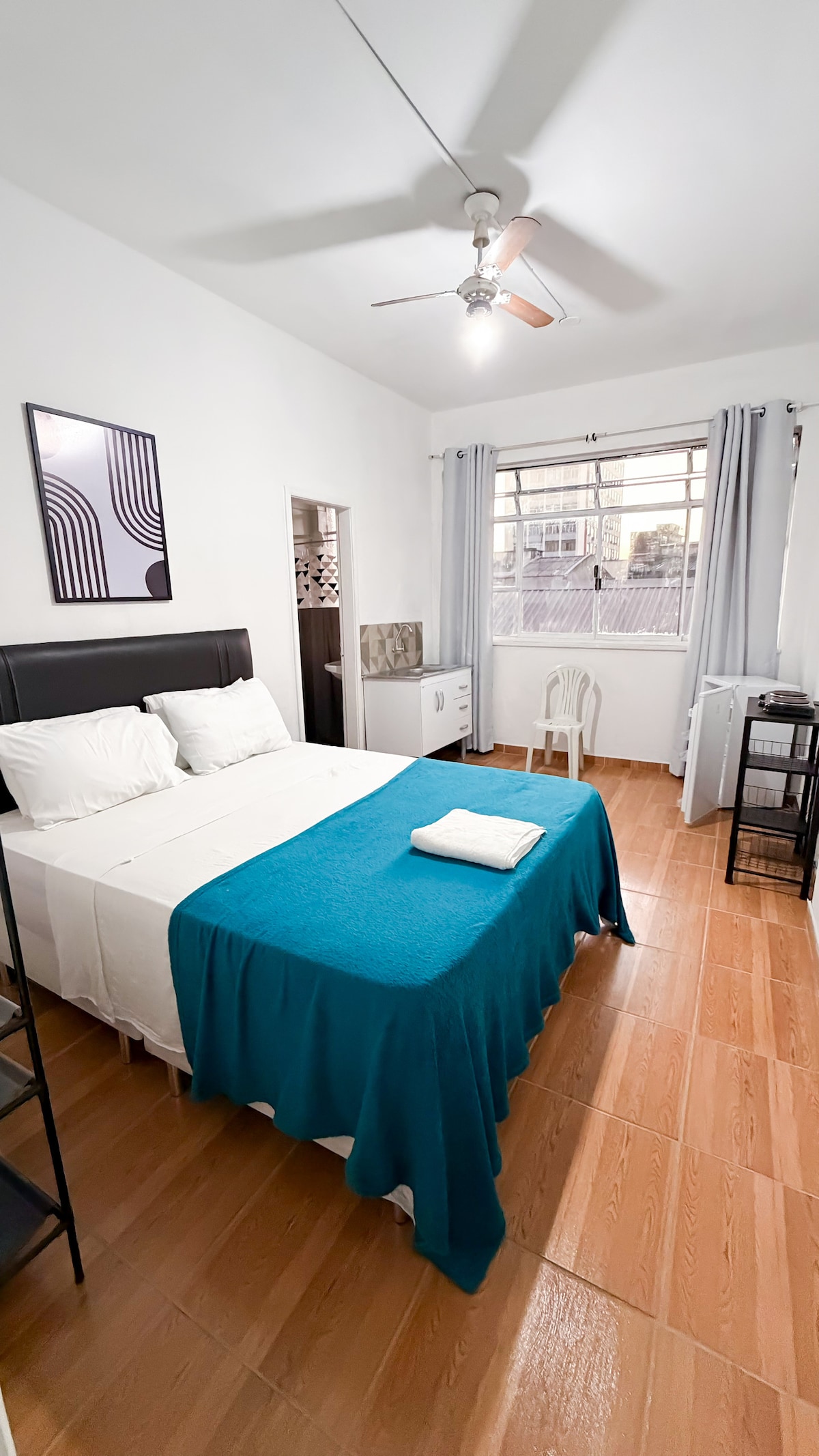 Þetta er einfalt og hagnýtt rými með einfaldri byggingu fyrir þá sem vilja gista í Volta Redonda aðallega vegna vinnu...Það er með gott viðskiptafyrirkomulag nálægt gestaumsjón.... Ég hef aðra valkosti fyrir gestaumsjón....... fyrir allar mismunandi tegundir gesta... Kæliskápur og öll einföld en hrein bygging með hreinu líni...o.s.frv. Ég geri sannleikann til að skerða ekki mat mitt... Insta HostingVr..Ég get tekið á móti fjölda fólks í VR City...