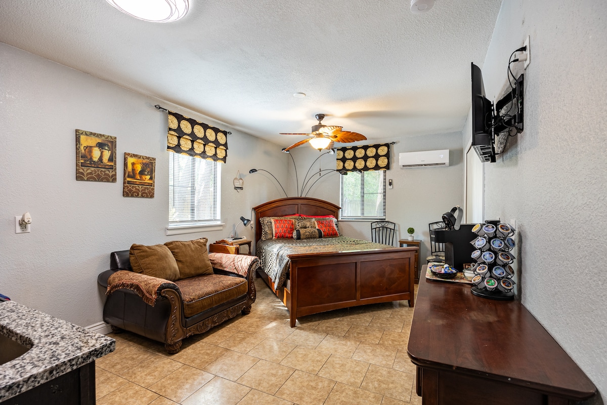 Þessi svíta er með sérinngang, stofu, eldhús með áhöldum og eldunaráhöldum, eitt svefnherbergi með king-rúmi og einkabaðherbergi. Þriðji og fjórði einstaklingurinn gætu fengið gistingu með hægindastól sem liggur flatur í queen-size rúmi í stofu. Einnig er boðið upp á loftdýnu í queen-stærð og portacrib. Frábær staðsetning fyrir Disney, Universal, SeaWorld og strendur. U.þ.b. 35 mín. til Disney; 27 mín. til Universal; 23 mín. í ráðstefnumiðstöðina; 45 mín. á ströndina og 35 mín. til flugvallar.