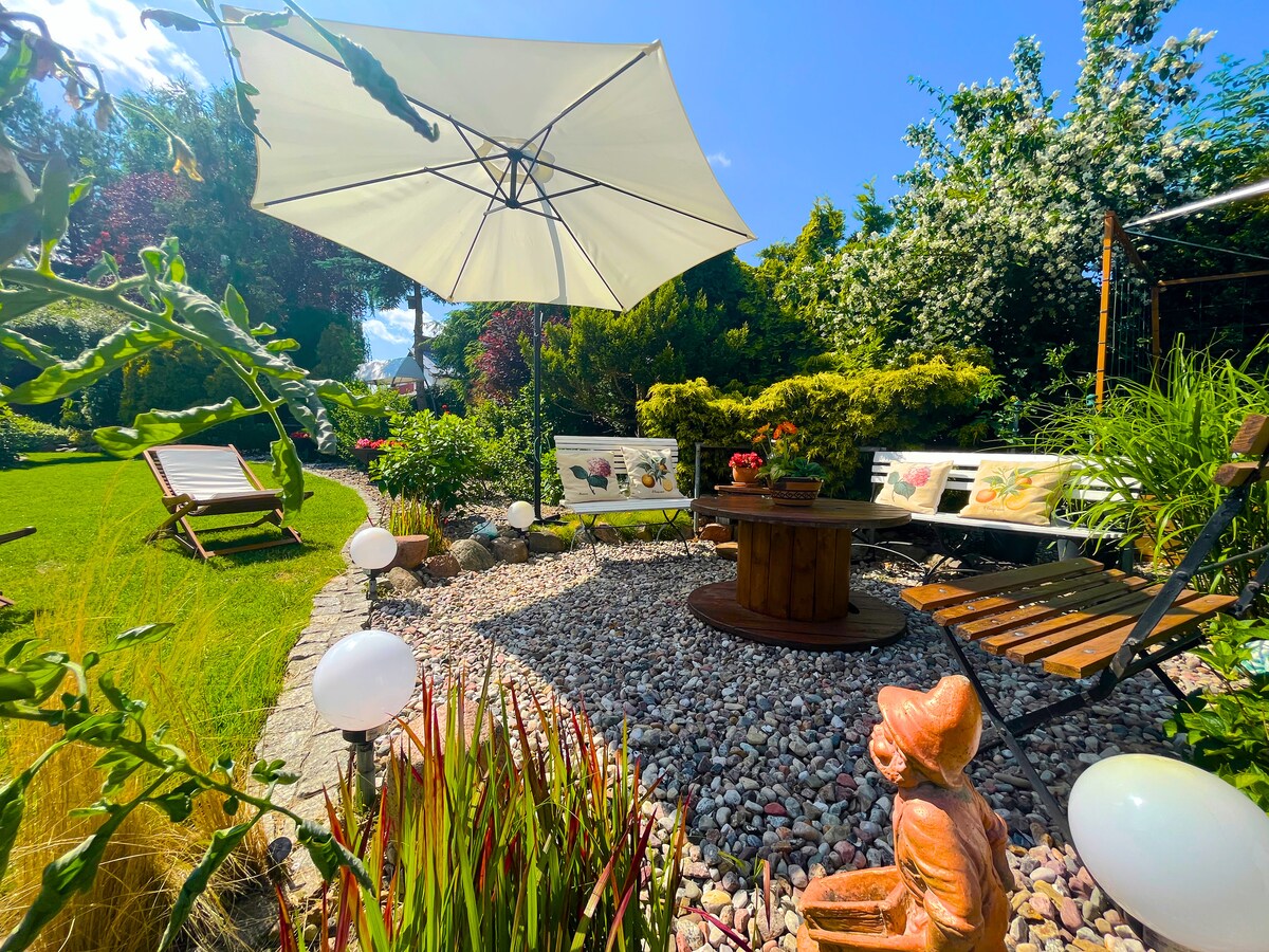 Njóttu lífsins á þessu kyrrláta og miðlæga heimili. Litla einbýlið er staðsett við rætur Streckelberg í næsta nágrenni við skóginn og ströndina. Í um 10 mínútna göngufjarlægð í gegnum fallega beykiskóginn er hægt að komast á ströndina. Miðbærinn er einnig hægt að ná fljótt og auðveldlega. Slakaðu á á veröndinni og njóttu fallegustu daga ársins. Þökk sé þráðlausu neti getur þú verið í sambandi við ástvini þína eða skipulagt skoðunarferðir í fallegu umhverfi.