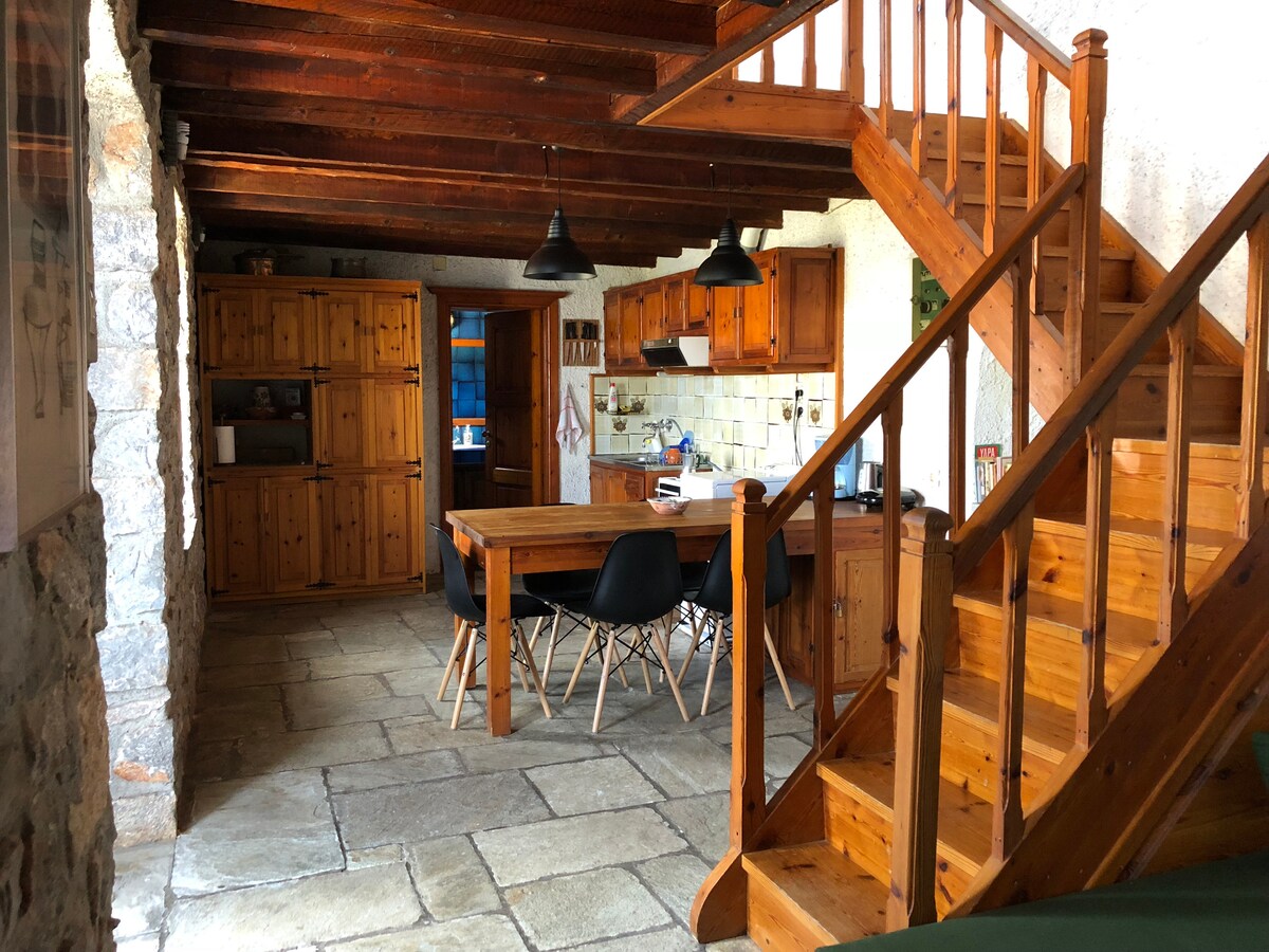 Tveggja svefnherbergja íbúðin okkar er í hefðbundnu gestahúsi sem var byggt fyrir 200 árum og endurgert að fullu með tækni og efni frá fyrri tíð. Byggingin er afskekkt en samt nálægt og er spennandi stökkbretti fyrir frí, ævintýrafólk og landkönnuði grísku eyjanna! Gakktu að höfninni, strandstígnum, krám og veitingastöðum. Slakaðu á á veröndinni með útsýni yfir sjóinn! Verið velkomin á Hydra Island... Við hlökkum til að taka á móti þér!