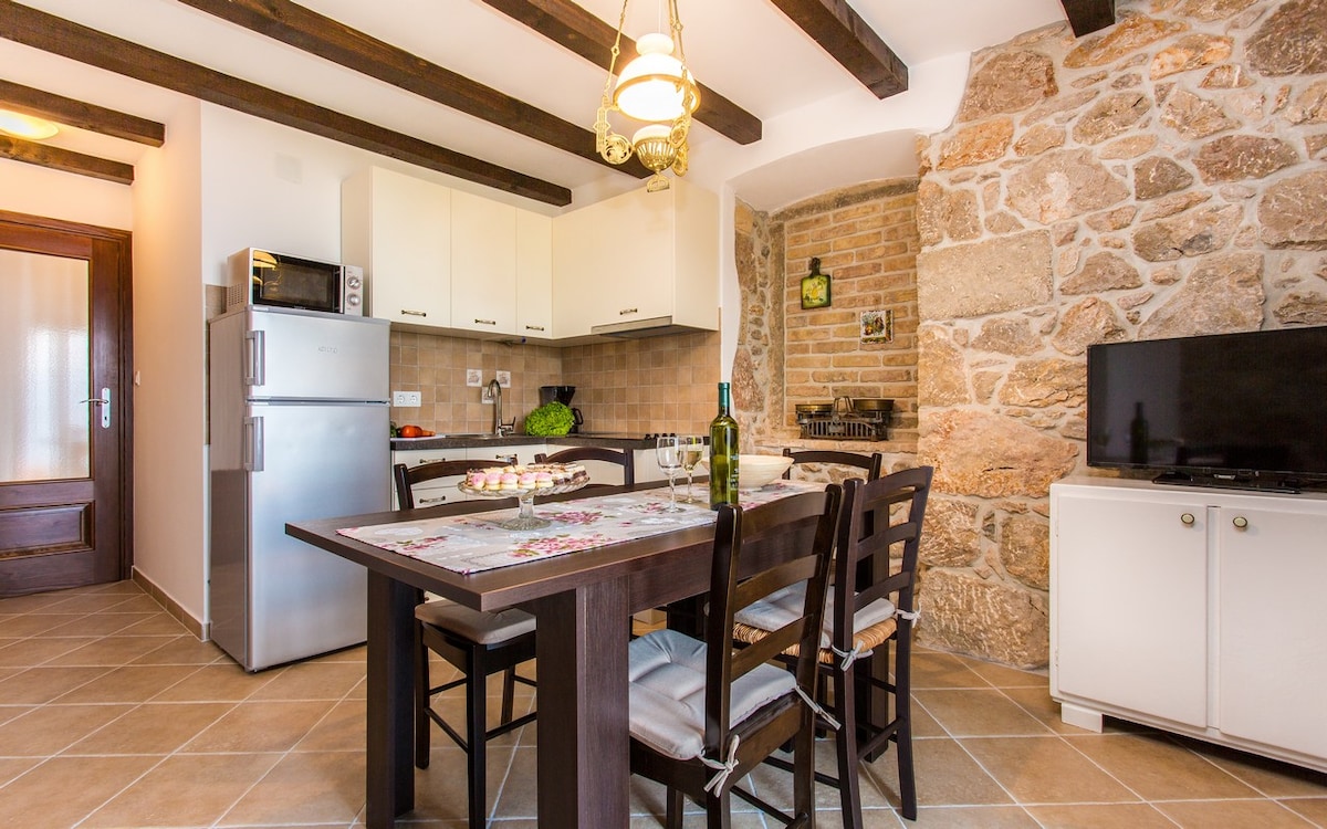 Íbúðin er staðsett í steinhúsi í hjarta gamla bæjarins í Vrbnik. Húsið er nýlega uppgert í nútímalegum stíl með smáatriðum sem hafa áhuga. Eignin er alveg með öllu sem við teljum að þú gætir þurft á að halda meðan á dvöl þinni hér stendur. Við hlökkum til að sjá þig og vonum að eignin okkar komi heim til þín. Njóttu dvalarinnar í 10 mínútna göngufjarlægð frá ströndinni og í nokkurra mínútna göngufjarlægð frá veitingastöðum, matvöruverslunum, bakaríum og kaffibarnum.