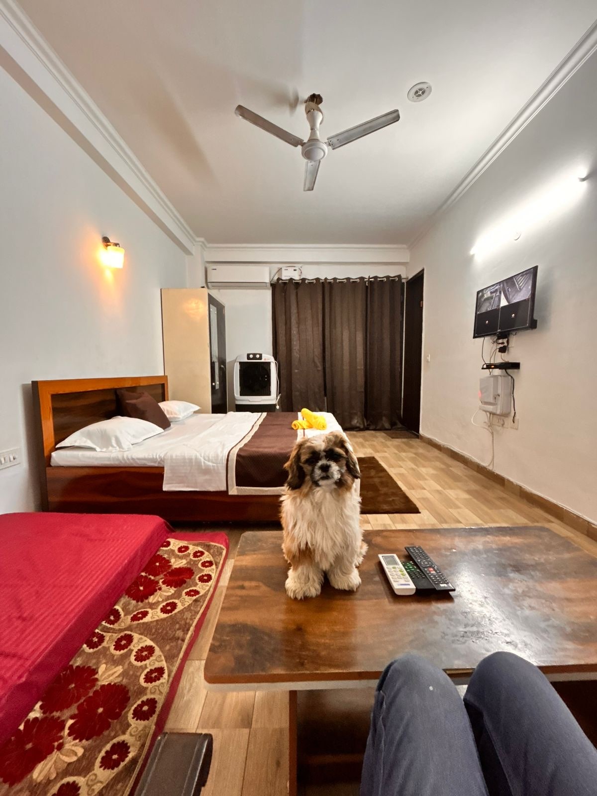 Hlæjandi sögur: Gisting í litlu húsnæði í Vrindavan Finndu fyrir „góðri stemningu“ í Laugh Tales, sálarríkri stúdíóíbúð sem er staðsett á fjórðu hæð í fína hverfi. Heimilið okkar blandar fullkomlega saman hið hirðilega og hið andlega og býður upp á friðsælt athvarf með stórkostlegu útsýni yfir sólsetrið og gróskumiklu umhverfi. Helstu atriði- Frábær staðsetning: Staðsett nálægt ISKCON, Prem Mandir og Banke Bihari Ji, Keli Kunj (búseta Premanand Ji Maharaj) skrefum frá staðbundnum mörkuðum og nægu bílastæði.