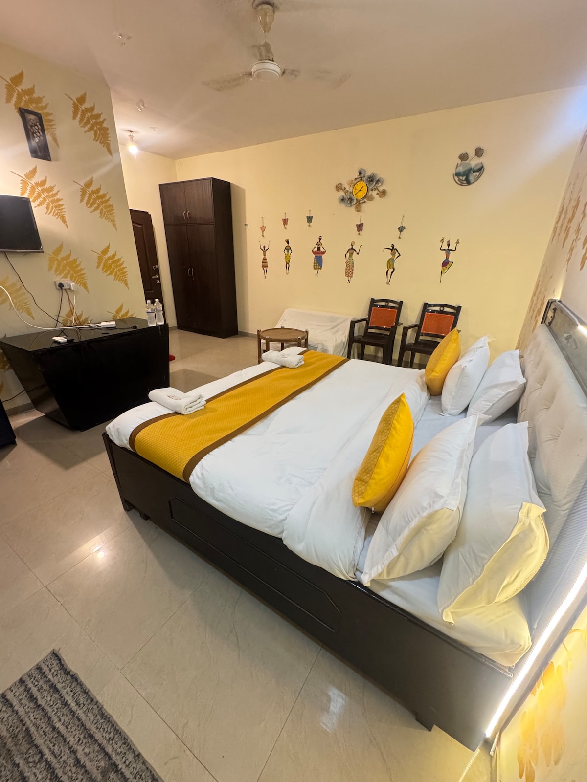 Nýbyggt heimili í Vrindavan og Mathura. • Aðeins 4 km frá Shri Krishna Janmbhoomi • 10 mínútna akstur að Prem Mandir Vrindavan • 6 km frá Grand Chaar Dham-hofinu, Vrindavan • 15 mín. til premanand maharaj(kelikunj ashram) Herbergin eru vel búin með sérbaðherbergi með vestrænum salernissetum, sturtusápu og sjampói. Herbergin eru með snjallsjónvarpi, tekatli og 8 tommu Wakefit dýnu fyrir rólegan svefn. Slakaðu á í notalegu setusvæði innandyra eða stígðu út í litla garðinn