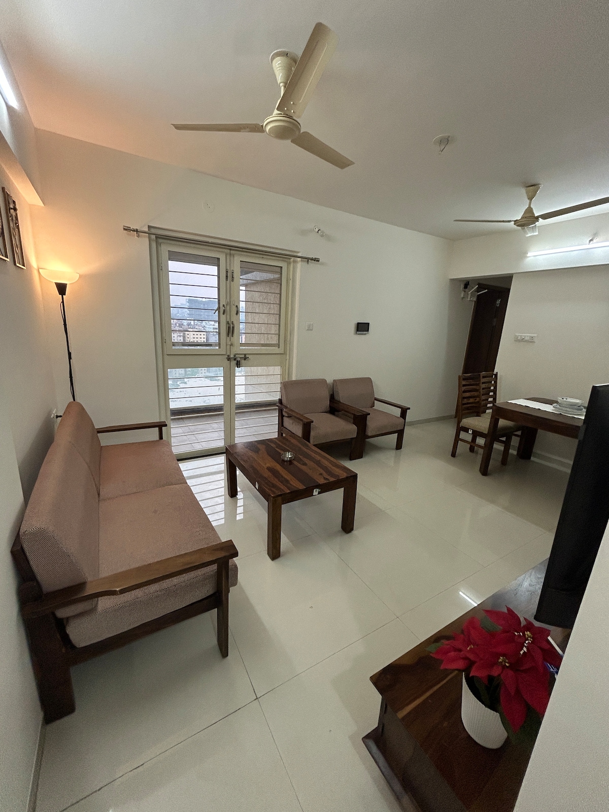 - Fully furnished, completely private 1 BHK in Pune (near Panchshil Towers, Kharadi) - Functional kitchen with basic utensils for home cooking - Home-cooked meals, freshly prepared in our home kitchen (available) - 100 Mbps high-speed Wi-Fi with UPS power backup - Dedicated on-site caretaker for assistance - Easy doorstep access to Swiggy, Zomato, Blinkit, Ola & Uber - Free daily cleaning by our trained housekeeping team - Approximately 30 minutes from Pune Airport - No pets, no parties